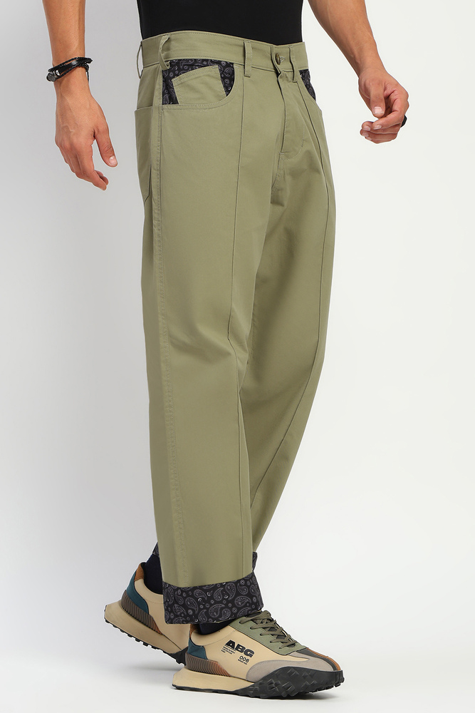 Step into standout streetwear style with these baggy fit cargo pants, crafted from durable twill fabric for all day structure and comfort. Designed for those who do not follow trends they set them these cargos feature a reverse side paisley print, subtly revealed for a unique edge that hits different. The pintuck detailing at the front adds a refined twist to the oversized silhouette, while classic cargo pockets bring that utility aesthetic to life. Whether you are in the city or just flexing your fit, these pants serve major style with functional flair. Model height is 6.2 feet and wearing 32 size. Disclaimer - Please note that the color of the product shown on the website may differ slightly from the actual product due to factors such as lighting and screen display.