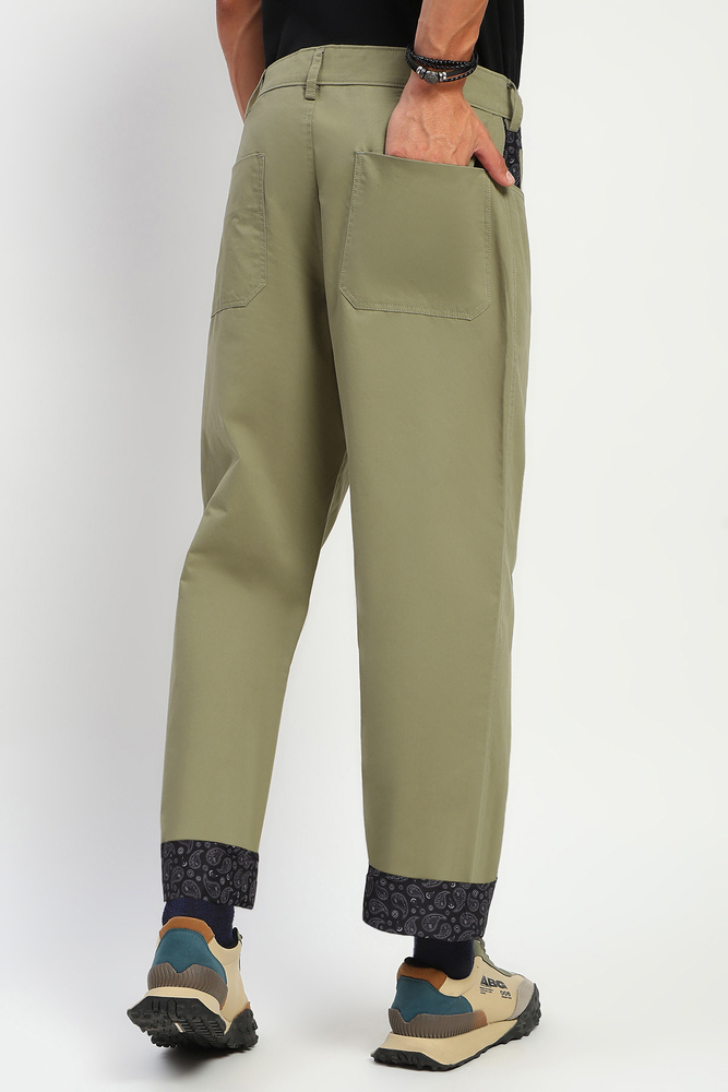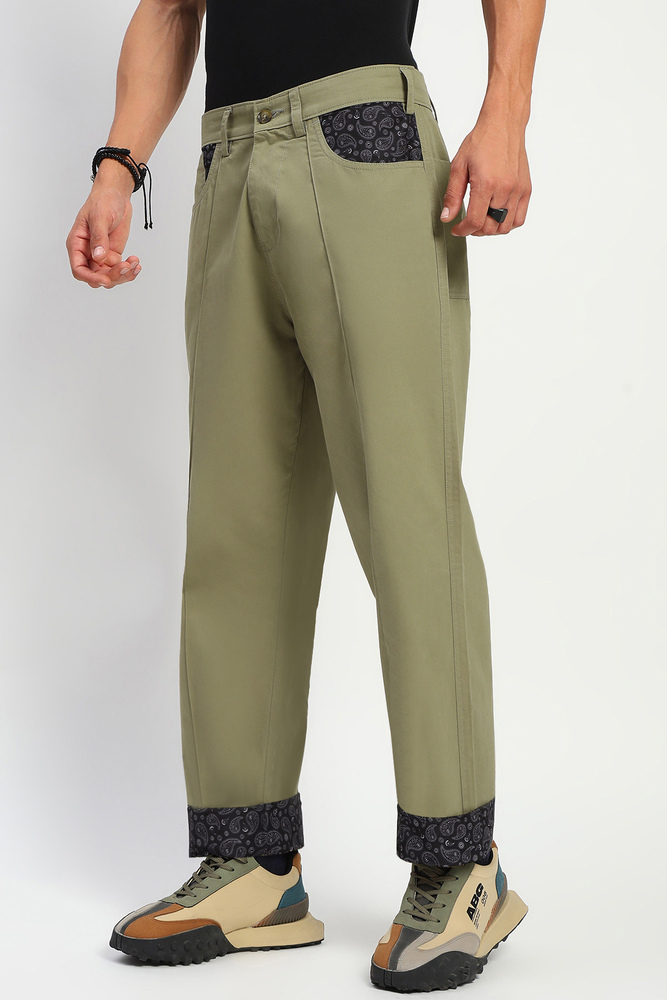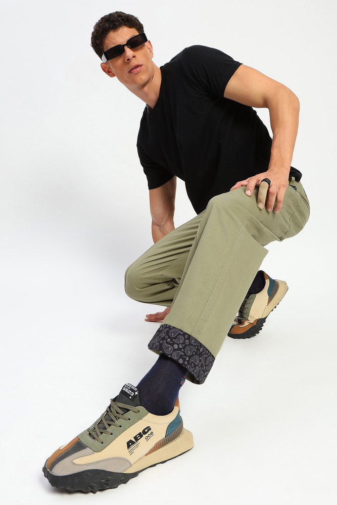 ABG Men Baggy Fit Beige Cargo with Reverse Paisley Print