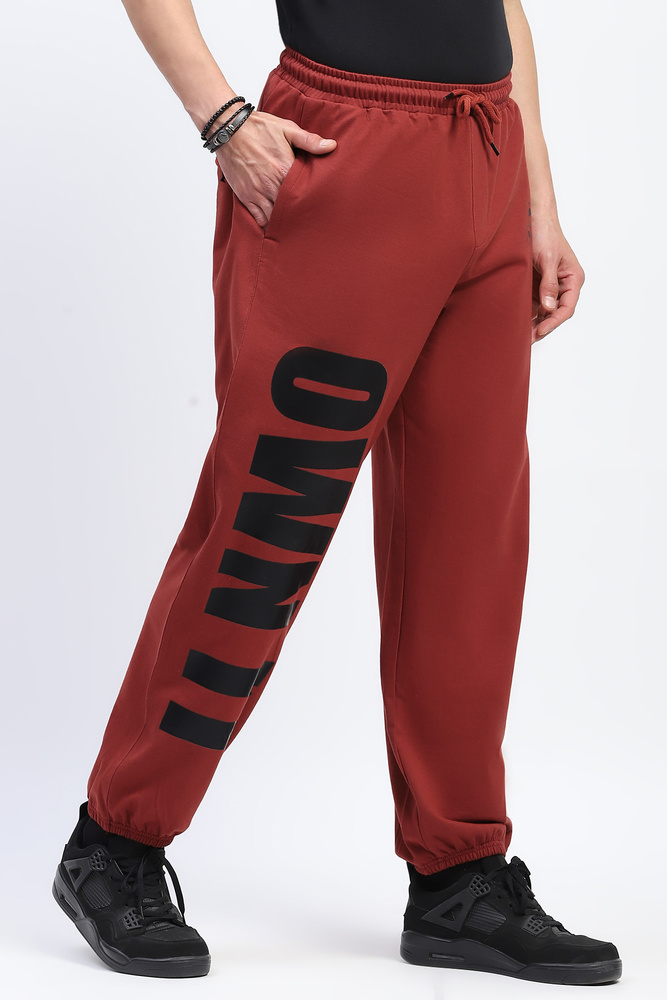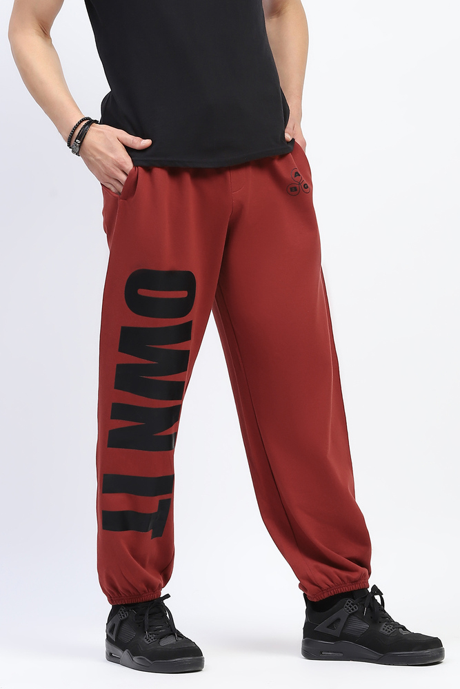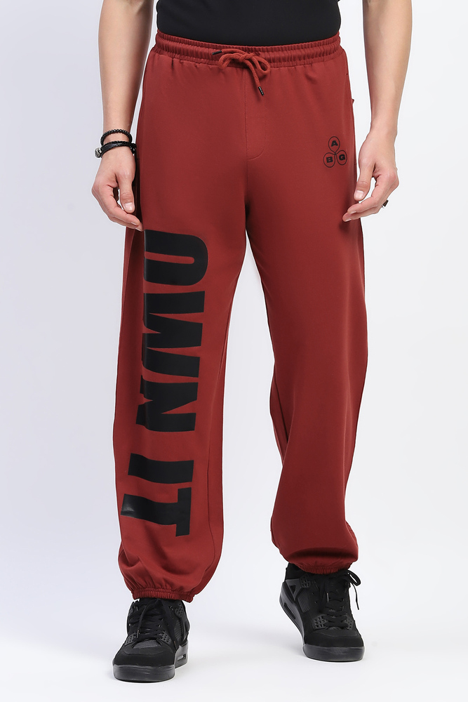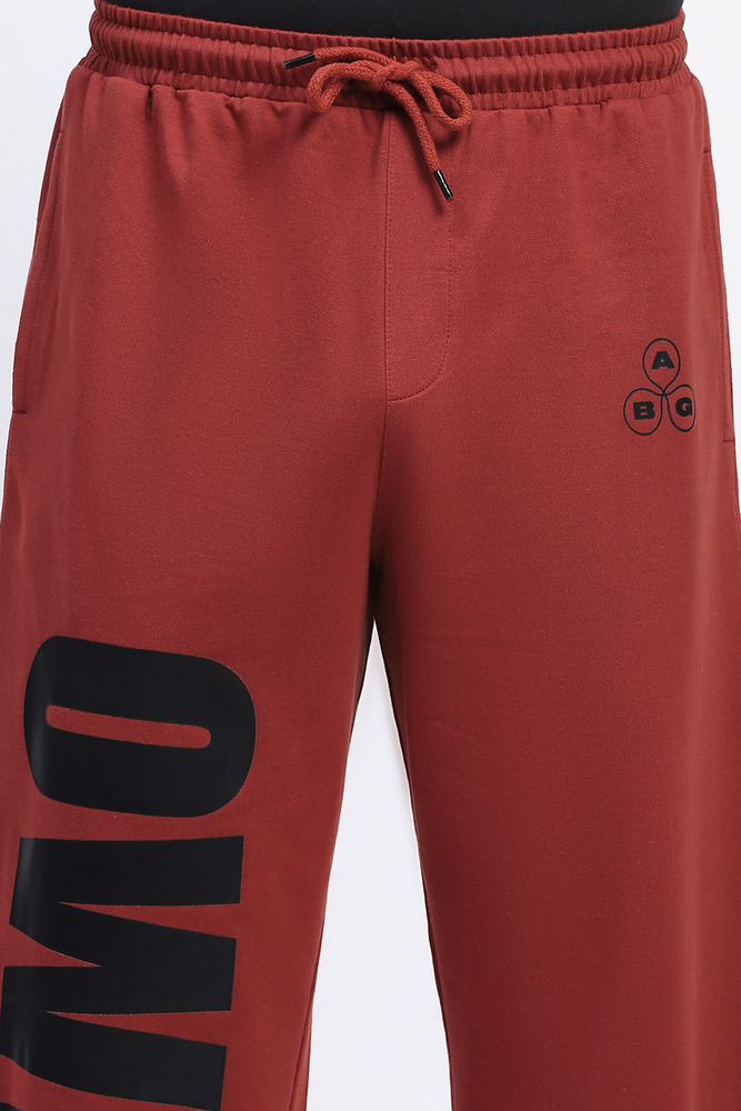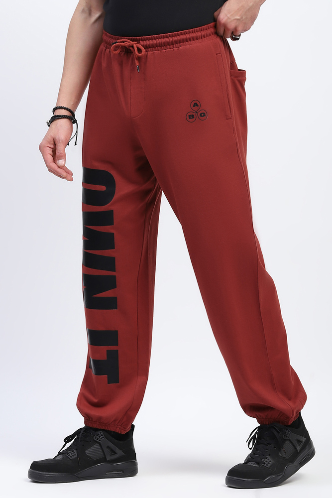 ABG Men Baggy Fit Rust Jogger with Printed Panel