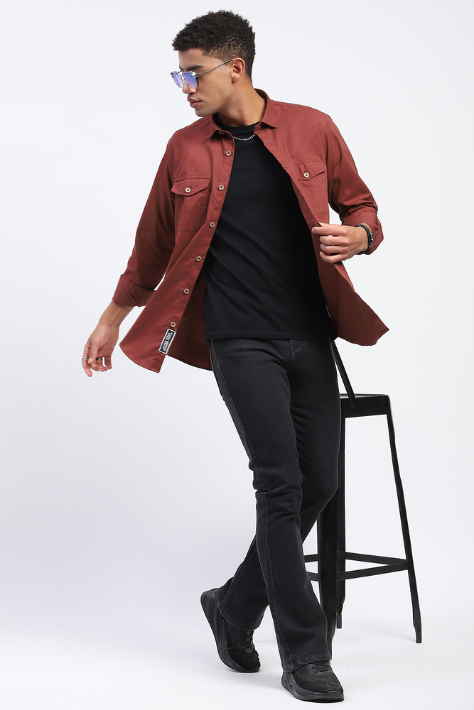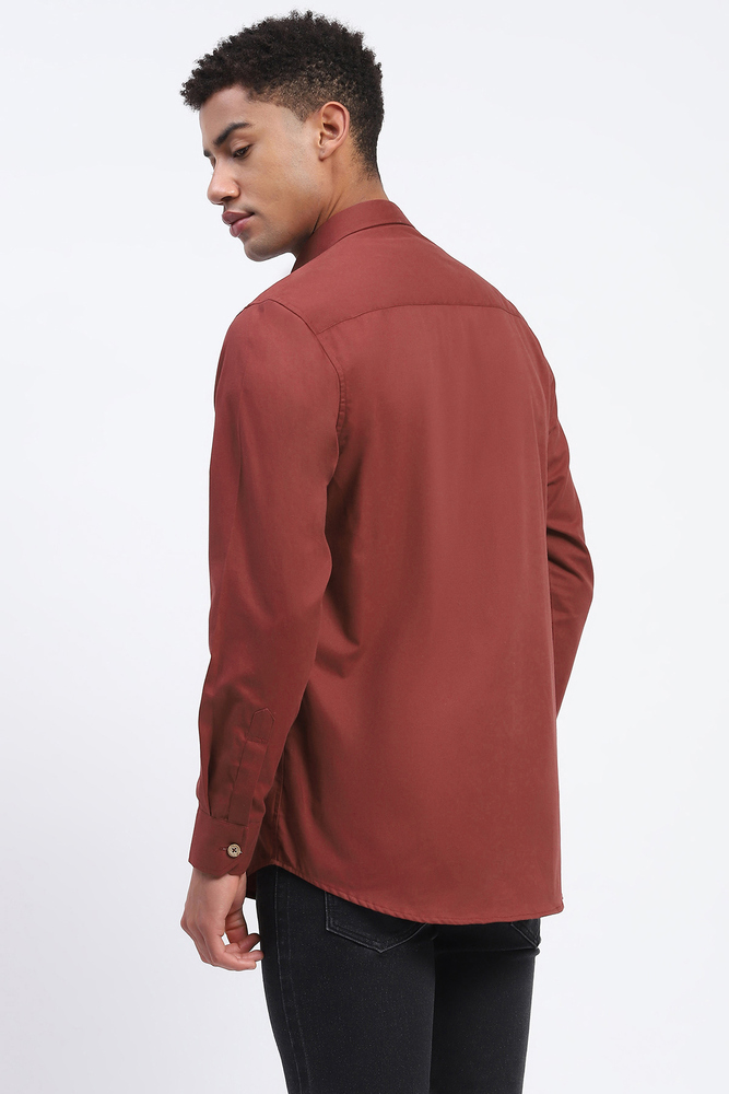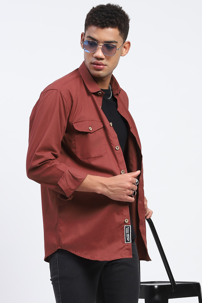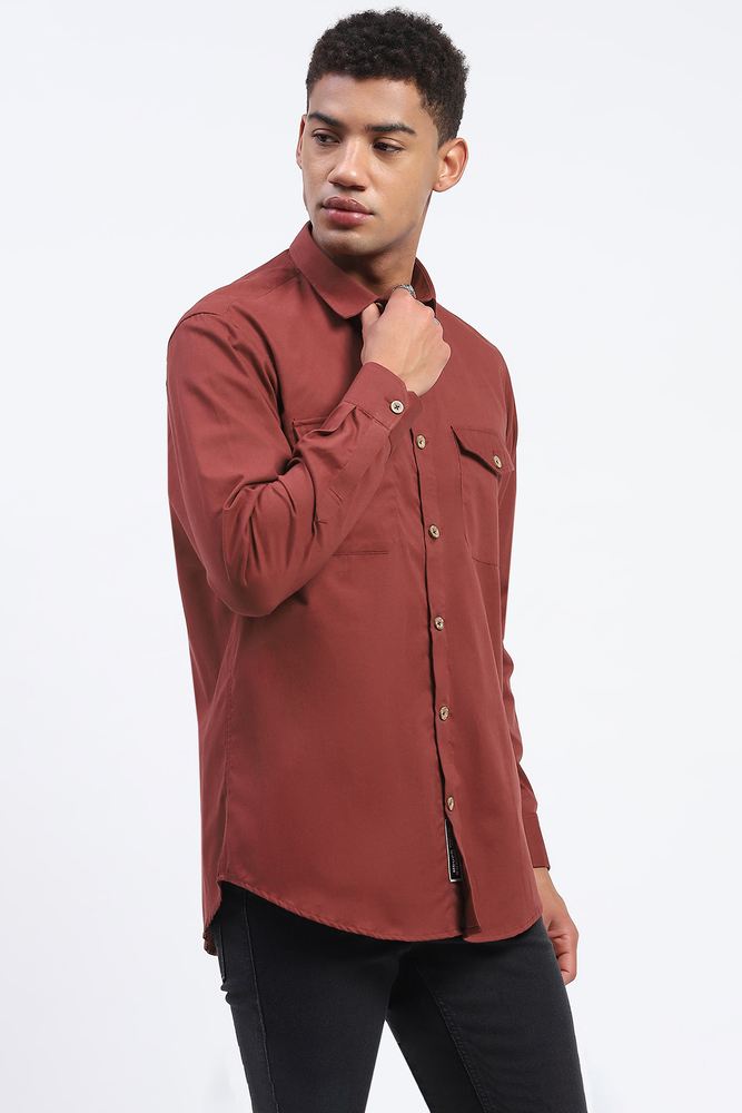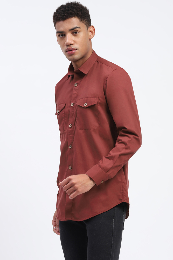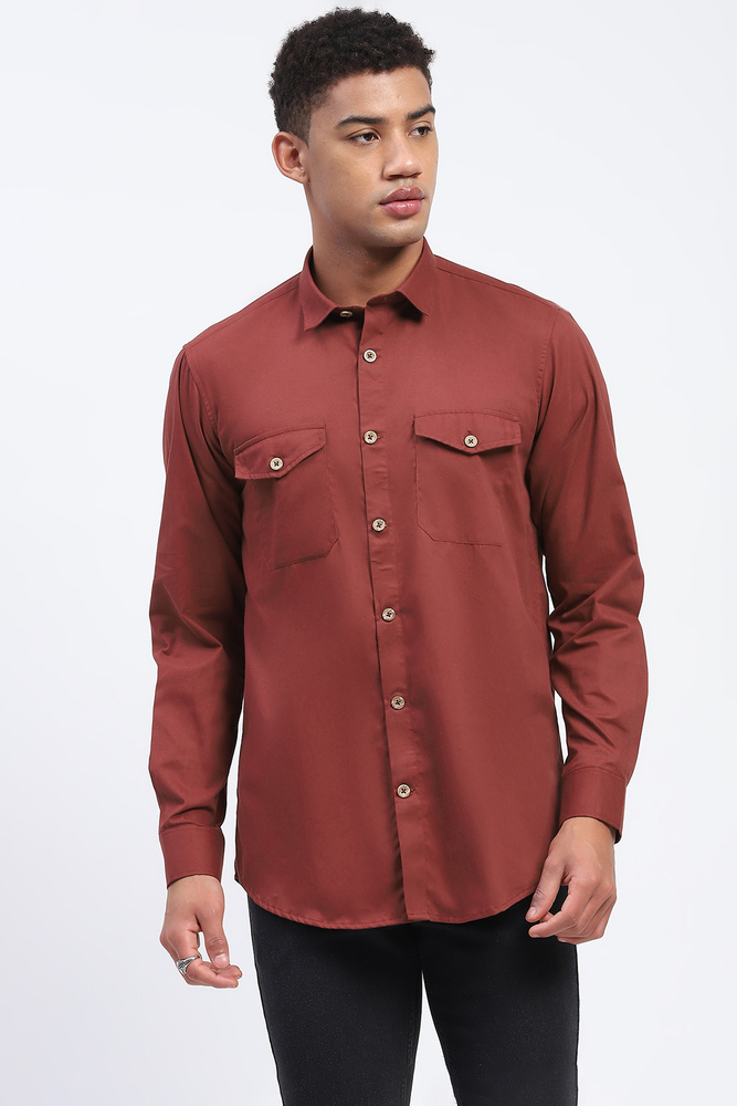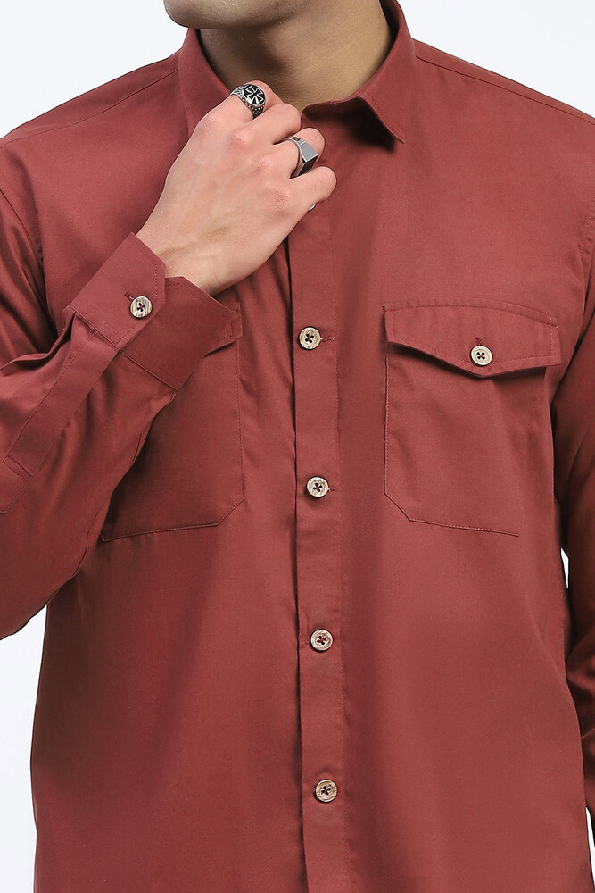ABG Men Brick Red 100% Cotton Twill Shirt with Dual Pockets