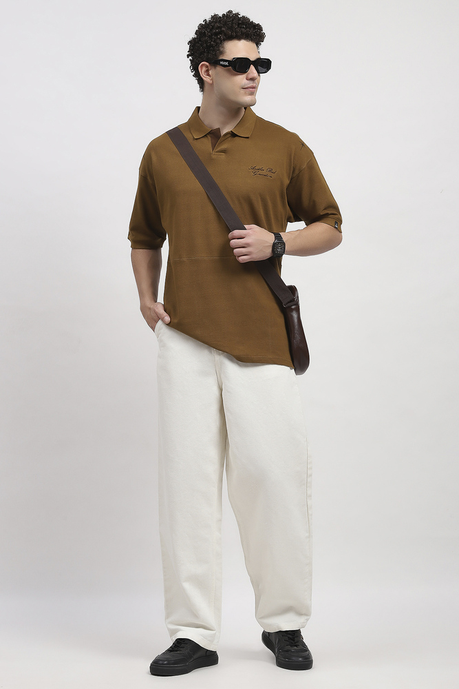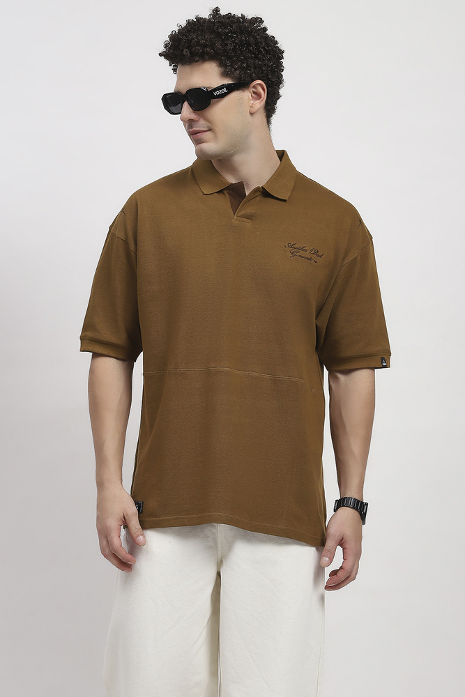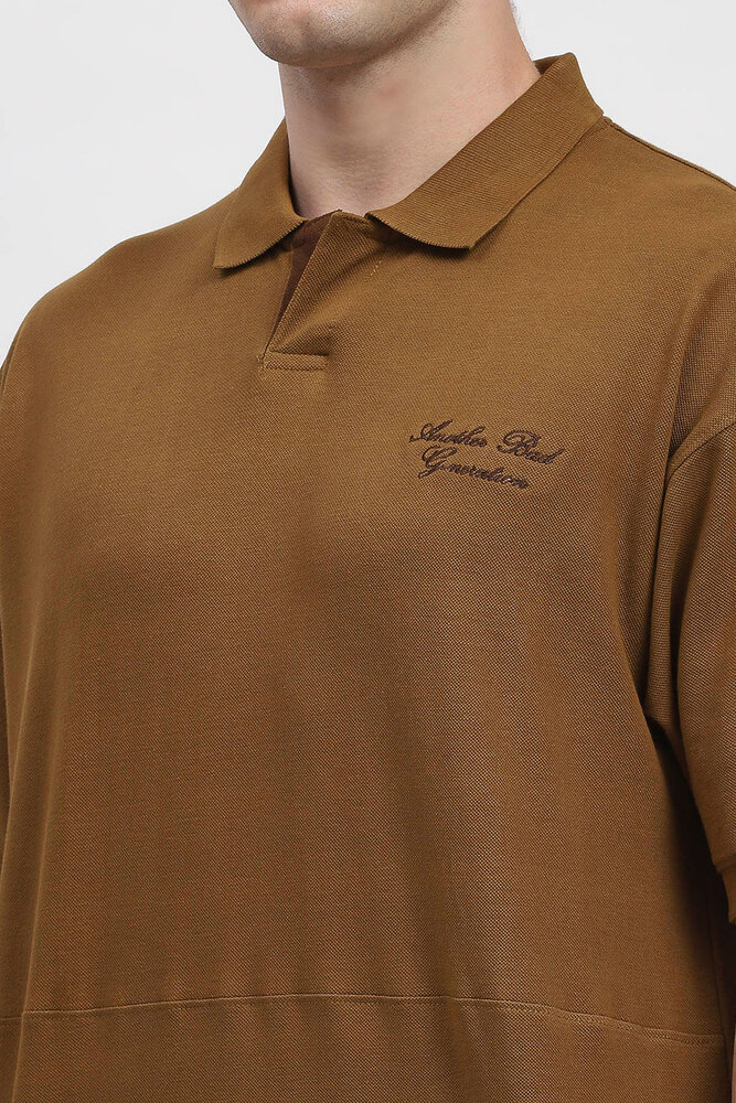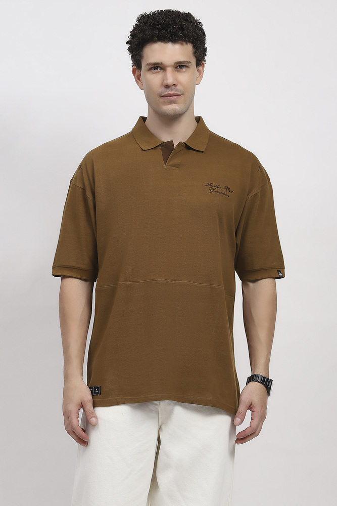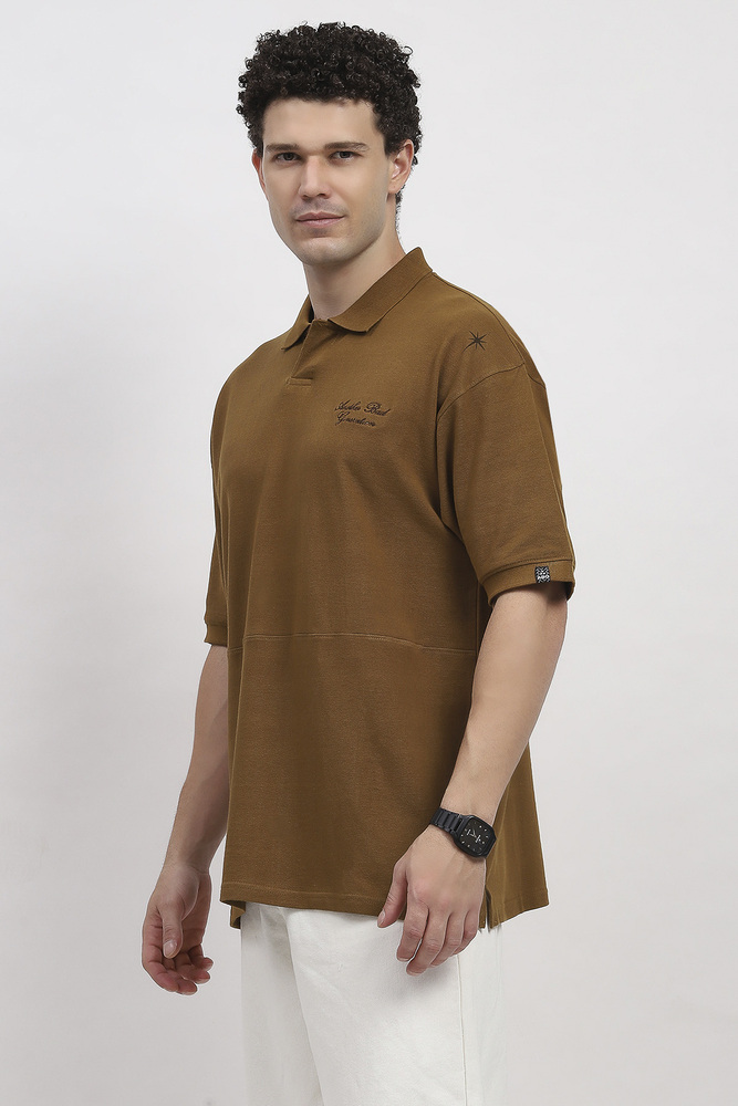 Upgrade your casual style with this brown polo shirt crafted from 100% cotton pique fabric for men. The shirt features a comfortable regular fit with a classic collar and short sleeves, offering a breathable and soft texture perfect for everyday wear. Subtle embroidered details on the chest and sleeve add a touch of sophistication, making it ideal for both relaxed outings and semi formal occasions. Pair it effortlessly with jeans or chinos for a versatile and timeless look. Model height is 6.1 feet and wearing M size. Disclaimer - Please note that the color of the product shown on the website may differ slightly from the actual product due to factors such as lighting and screen display.