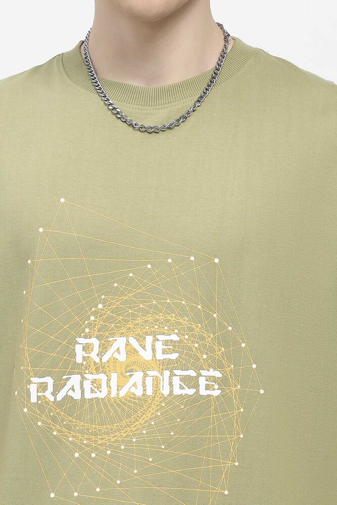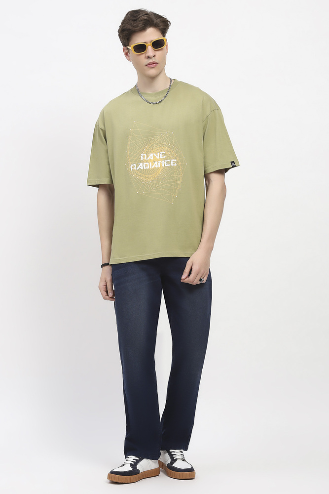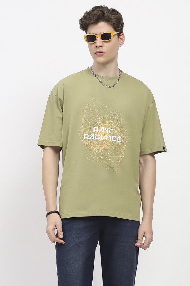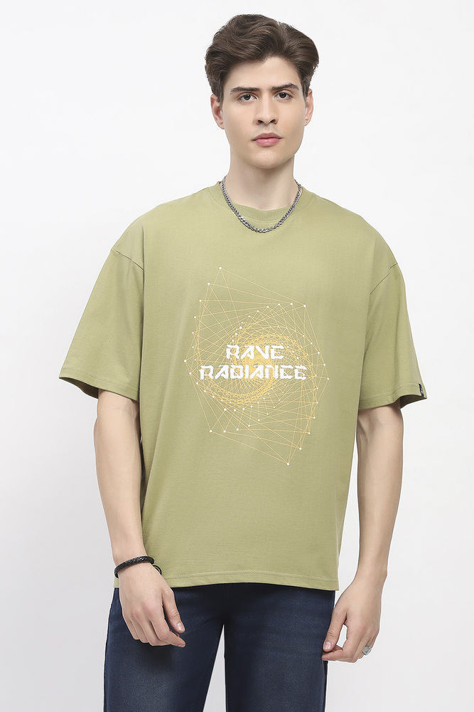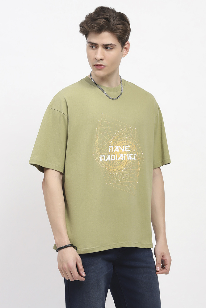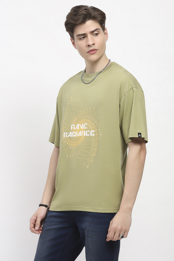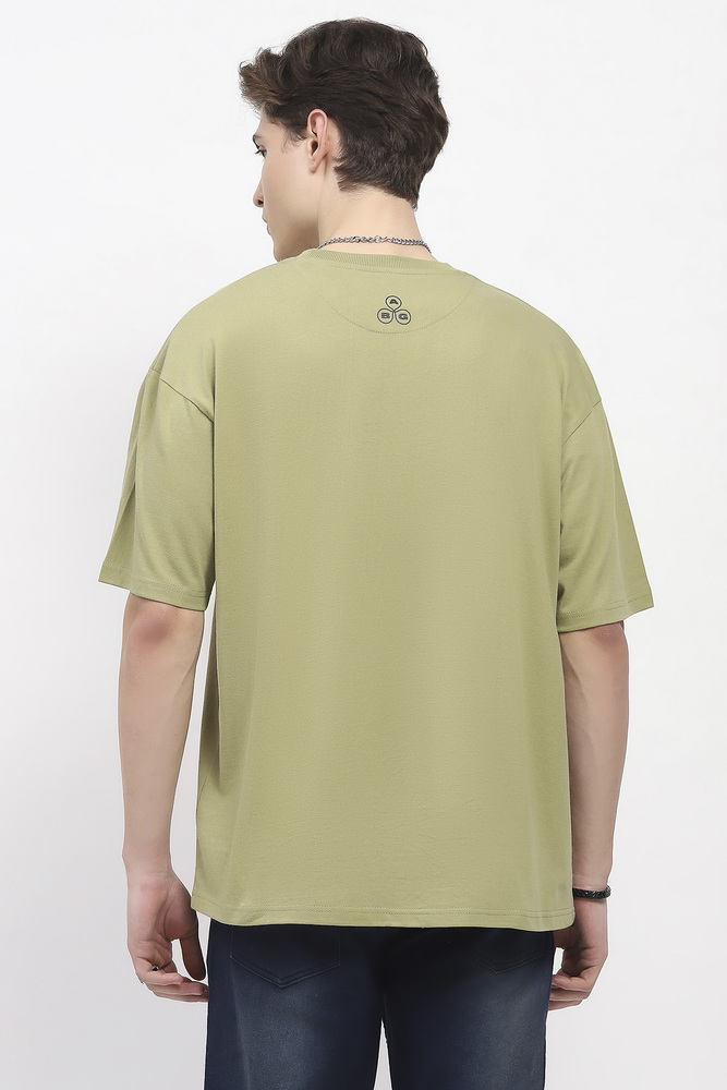 ABG Men Olive Green Printed Oversized Cotton Spandex Casual T-Shirt