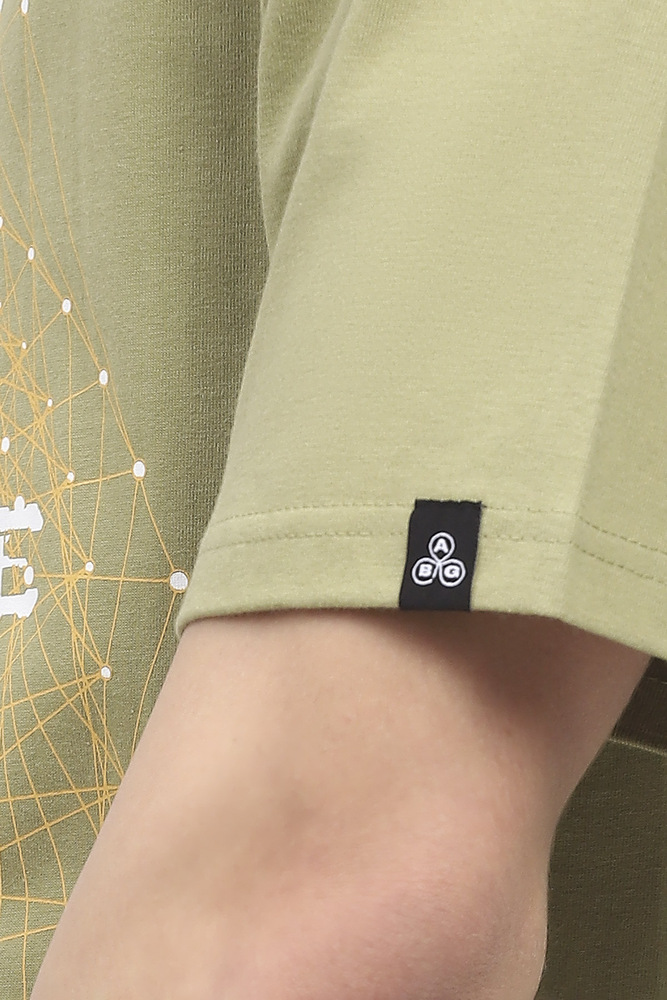 ABG Men Olive Green Printed Oversized Cotton Spandex t-shirt combines modern design with everyday comfort. Made from high quality cotton spandex fabric, it feels soft on the skin while providing breathability and flexibility. The oversized fit ensures a relaxed and effortless look, making it ideal for casual and street style outfits. The rich olive green shade adds a fashionable edge, while the minimal graphic detail gives it a contemporary appeal. Perfect for pairing with denim, joggers, or casual trousers, this t-shirt is suitable for daily wear, travel, college, and weekend outings. Designed for durability and comfort, it is a versatile wardrobe essential for men.
