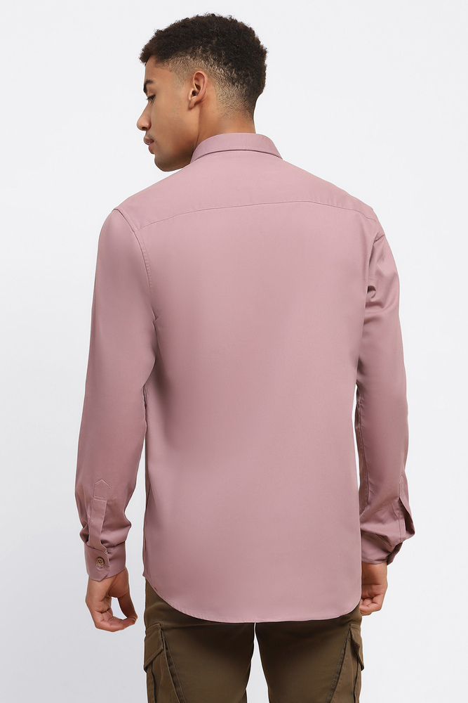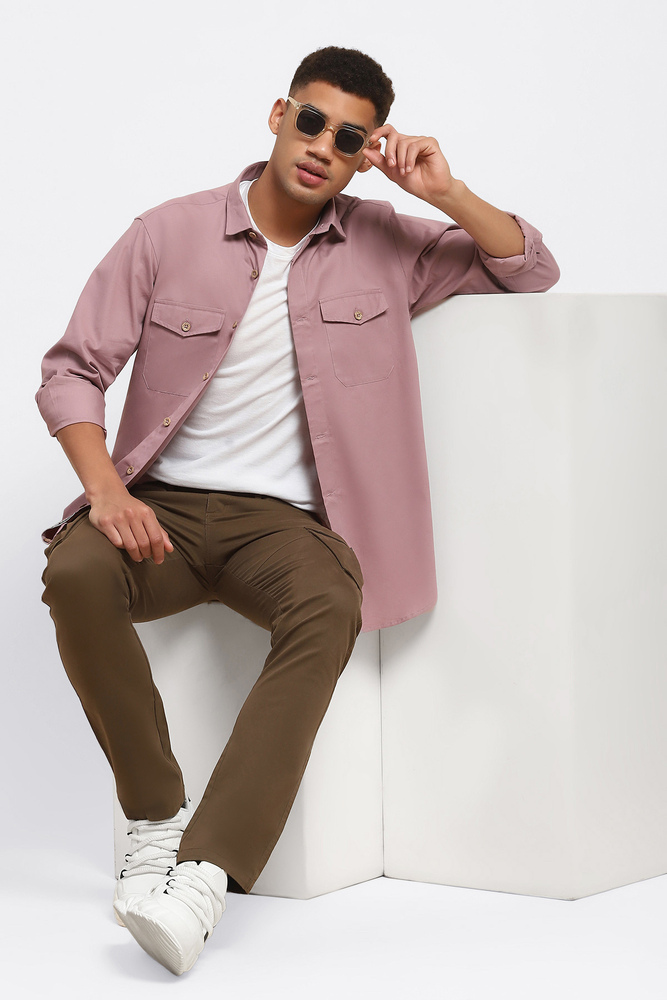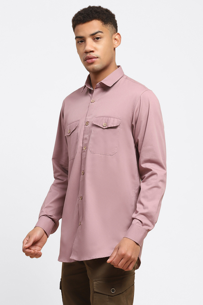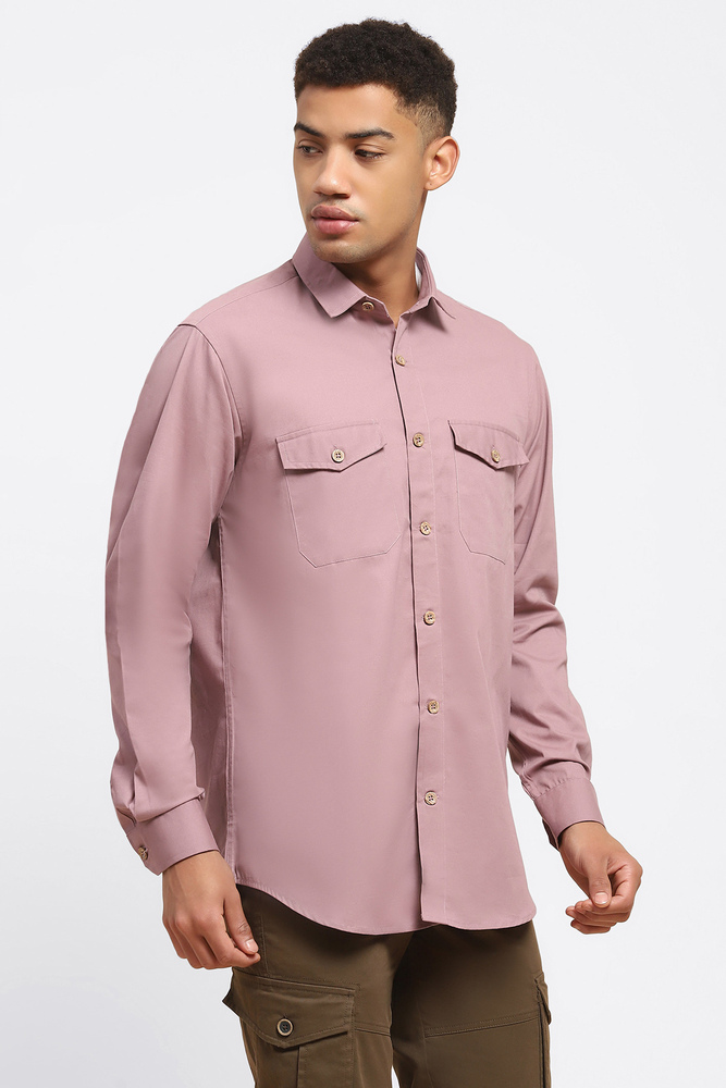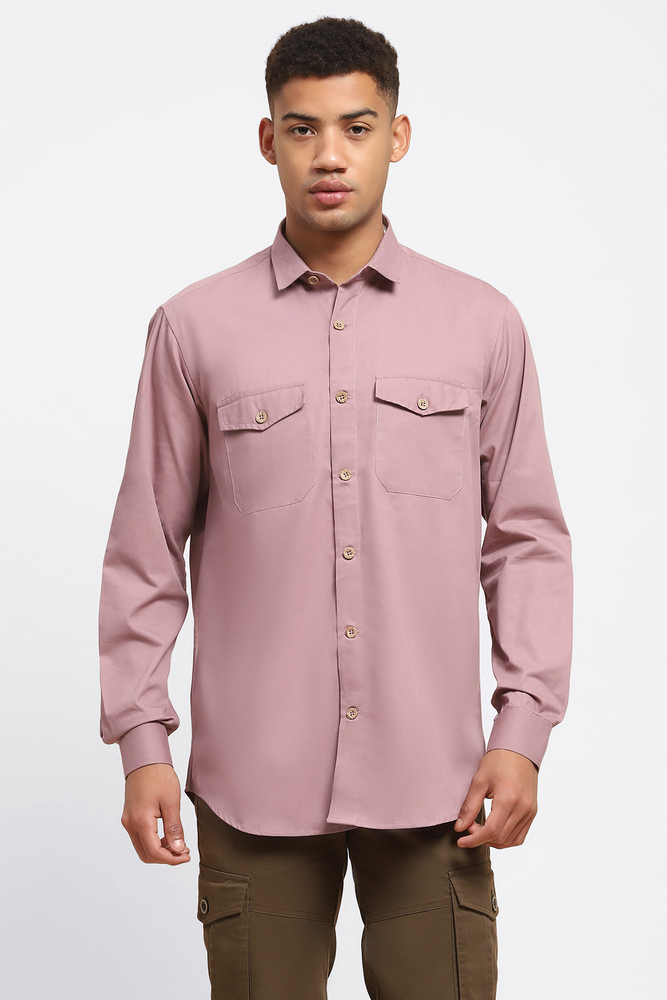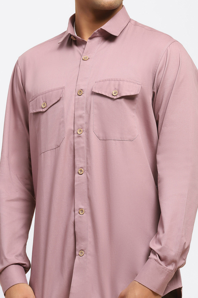 ABG Men Pastel Pink Solid Double Pockets Shirt