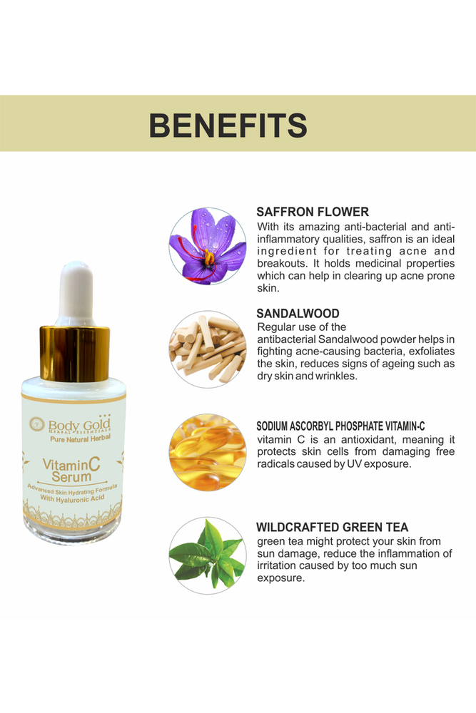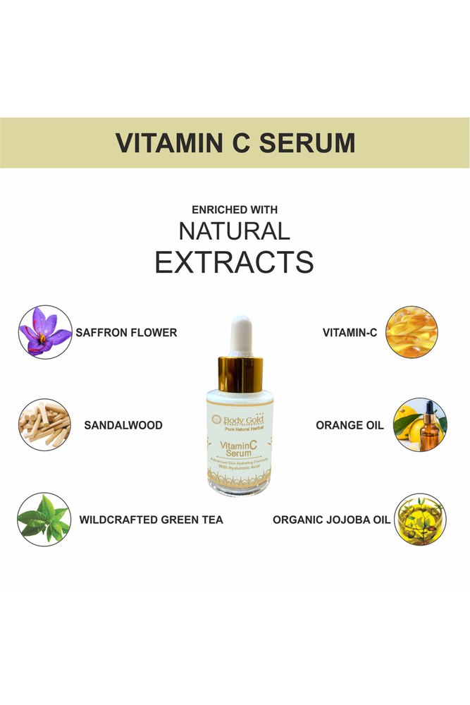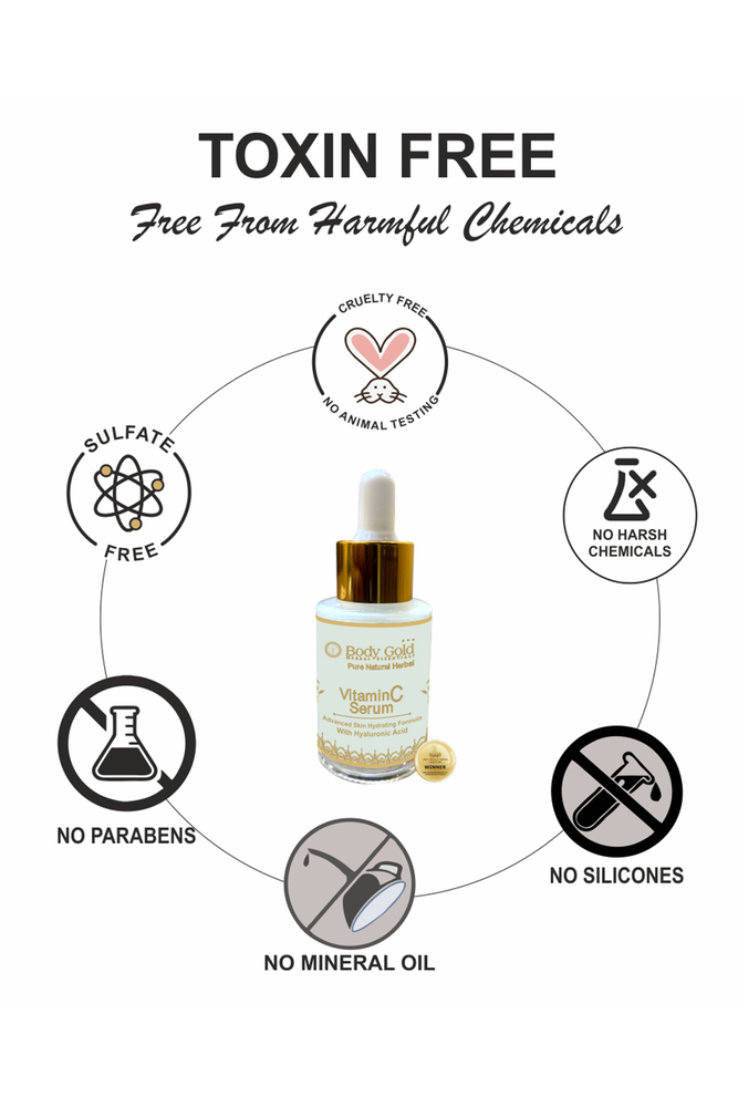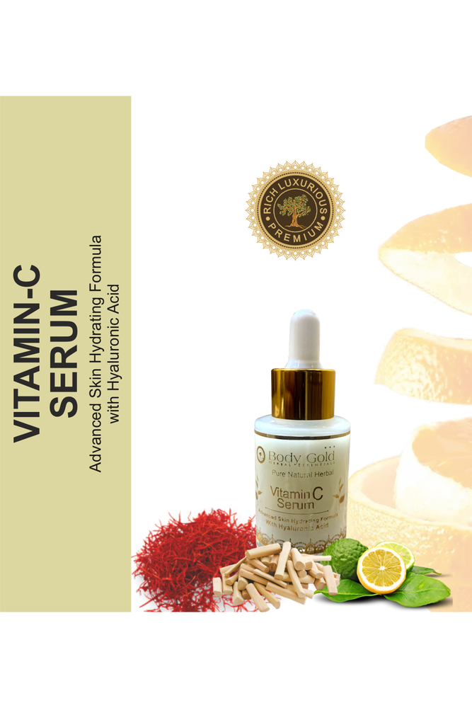 This powerful Vitamin C Serum is a multi action brightening and rejuvenating formula enriched with hyaluronic acid, bakuchiol, niacinamide, kojic acid, and ferulic acid. Together, these actives work to visibly fade dark spots, even out skin tone, and boost natural radiance. Hyaluronic acid floods the skin with long lasting hydration, while bakuchiol supports collagen and smooths fine lines without irritation. Niacinamide and kojic acid target pigmentation, and ferulic acid enhances antioxidant protection for a firmer, clearer, more luminous complexion. A daily glow boosting essential for brighter, healthier looking skin.