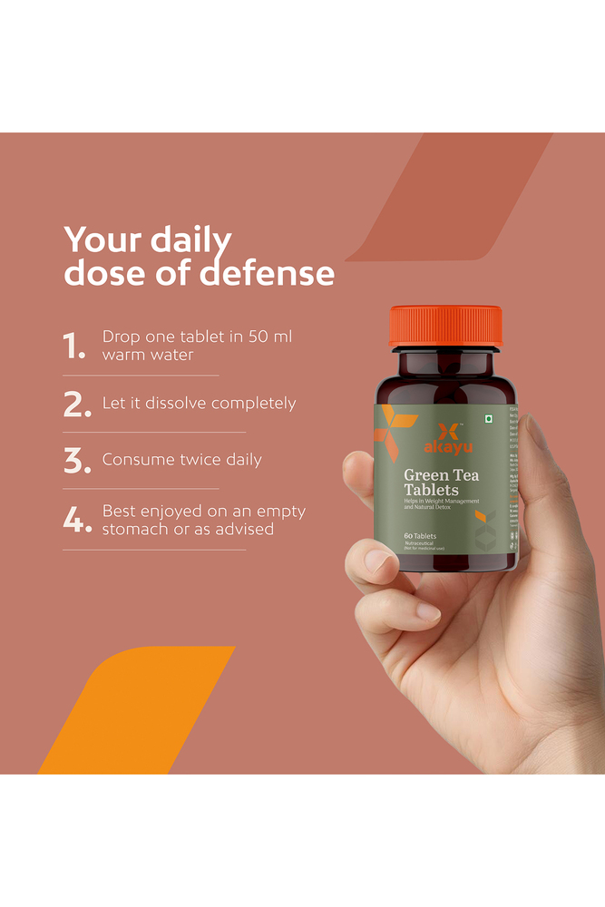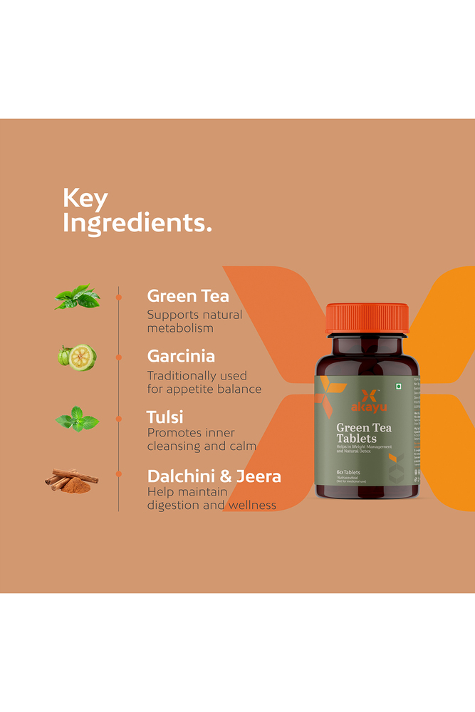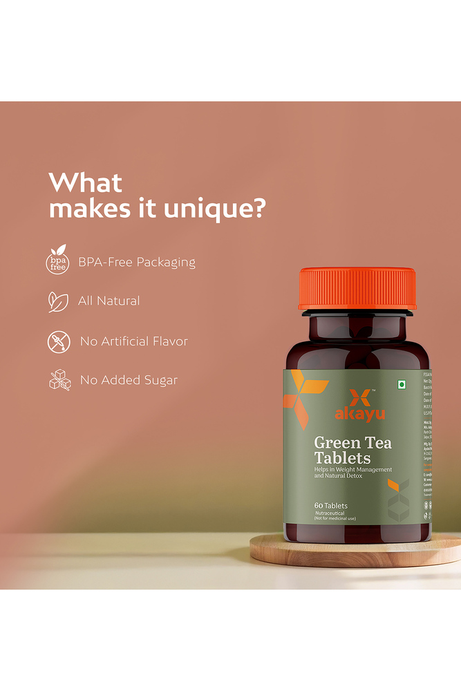 Akayu Green Tea Effervescent Tablets offer a refreshing way to support daily detox and wellness goals. Infused with herbs like Green Tea, Garcinia, and Tulsi, this formulation is designed to support metabolism, hydration, and mindful weight management. Convenient to use and easy to absorb, it fits seamlessly into modern wellness routines, without added sugar or preservatives.
