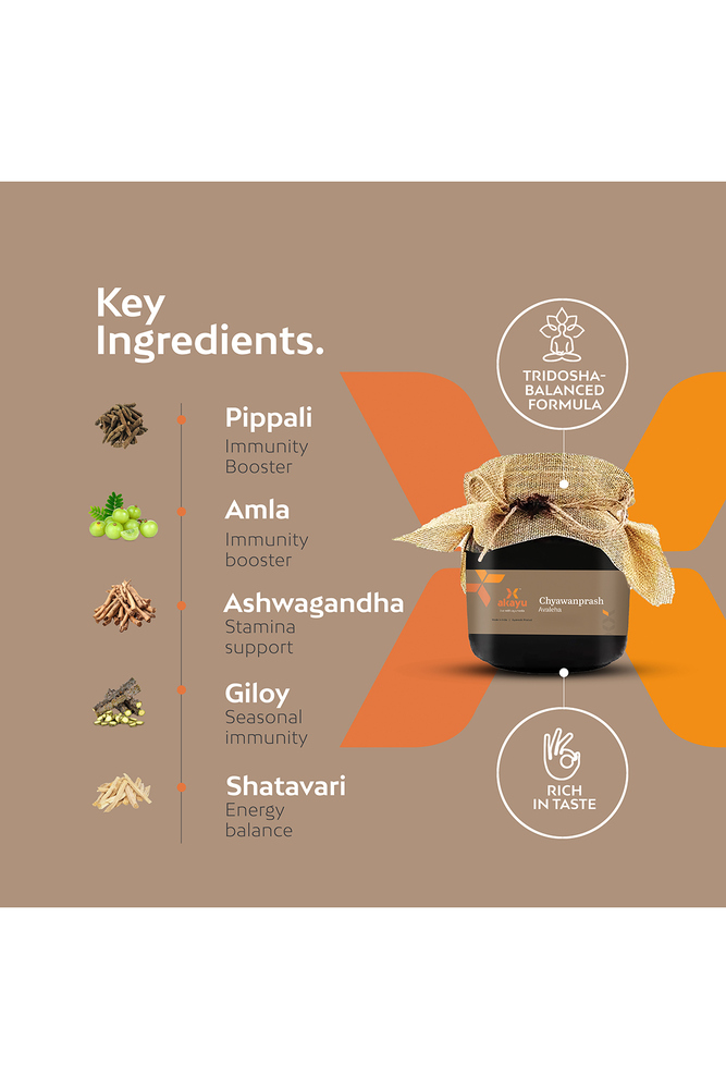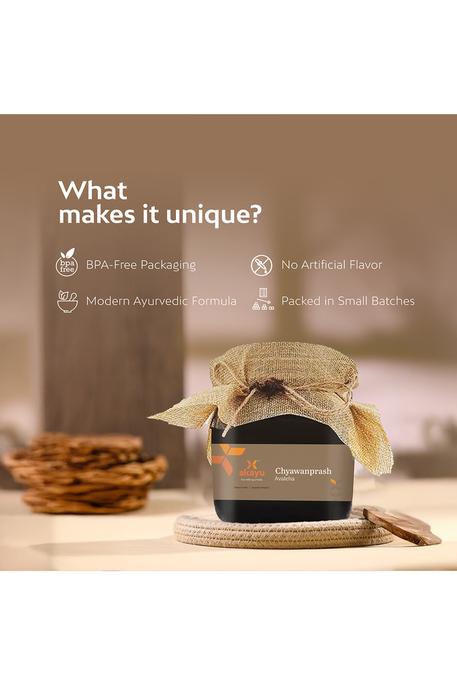 Akayu Chyawanprash Avaleha is a low sugar Ayurvedic formula crafted to boost immunity, enhance energy, and support respiratory health. Made with 40+ handpicked ingredients like Pippali, Ashwagandha, and Giloy, it offers traditional wellness benefits with a modern twist. Perfect for daily vitality, it protects against seasonal illnesses while keeping you energized and resilient.