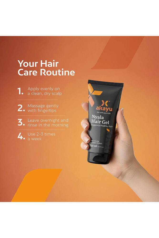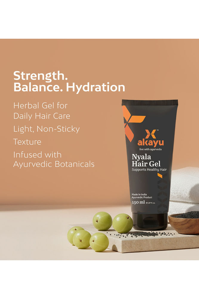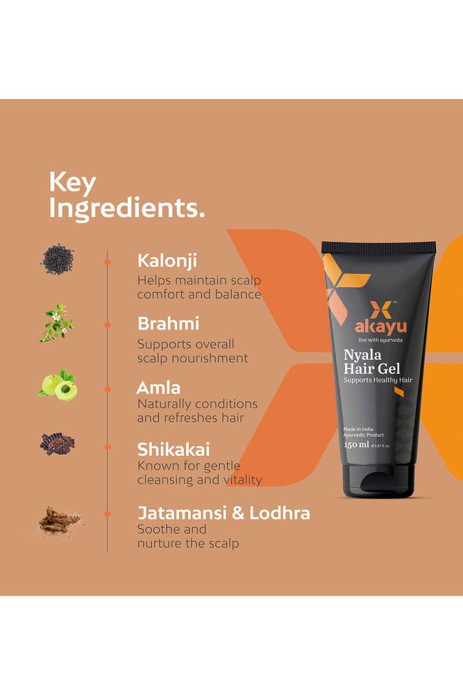 Akayu Nyala Hair Gel is a nourishing Ayurvedic formulation designed to strengthen hair and maintain scalp health. Made with herbs like Kalonji, Amla, and Brahmi, it supports natural hair texture and hydration while providing a soothing, non sticky feel. Ideal for modern users seeking traditional hair care made easy, this blend revitalizes your scalp and enhances your daily hair care ritual.
