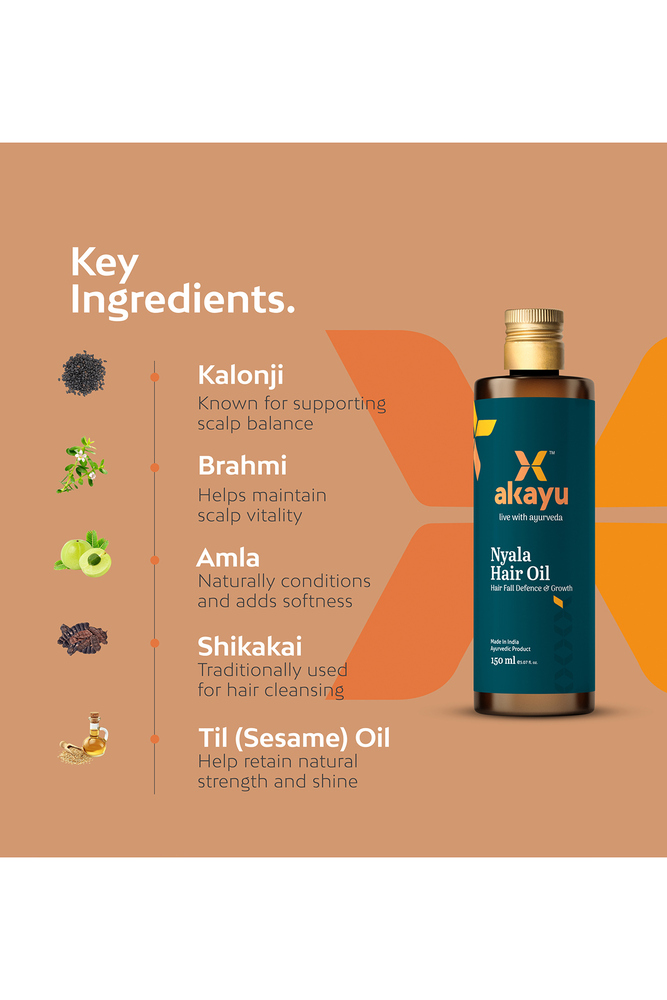 Akayu Nyala Hair Oil, Hair Fall Defence And Growth Oil with Kalonji, Amla And Brahmi, Sesame Oil Blend for Stronger Hair