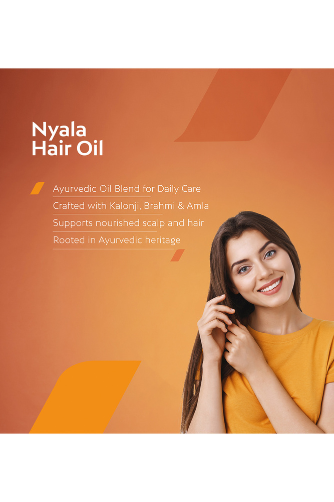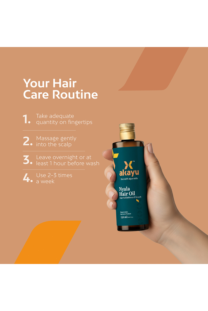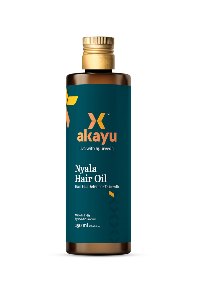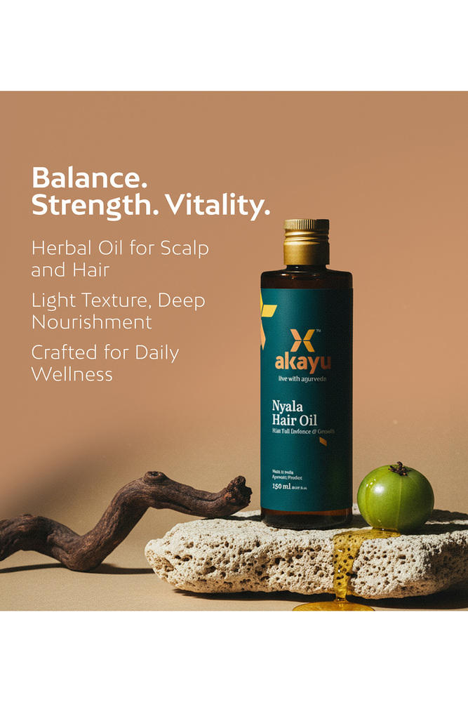 Akayu Nyala Hair Oil is an Ayurvedic blend crafted for hair fall defence and stronger growth. Made with time tested herbs like Kalonji, Amla, and Brahmi in a pure sesame oil base, it provides nourishment from root to tip while promoting scalp comfort. Its balanced formulation supports healthy hair, reduces dryness, and enhances your everyday hair care ritual naturally.