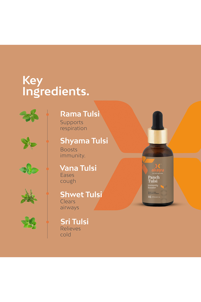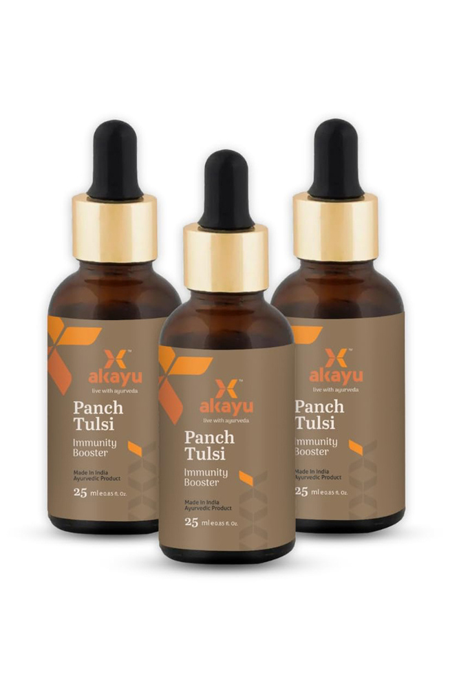 Akayu Panch Tulsi Oil, Immunity Booster, Natural Herbal Formula for Wellness and Vitality Pack of 3 (25ml)