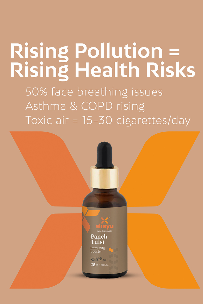 Akayu Panch Tulsi Oil is a therapeutic grade Ayurvedic formulation designed to support respiratory health and boost immunity. Made with a unique blend of five types of Tulsi, this oil provides natural antimicrobial protection, relieves symptoms of colds and coughs, and enhances overall well being. Ideal for oral use or steam inhalation, it offers versatile and effective respiratory relief.