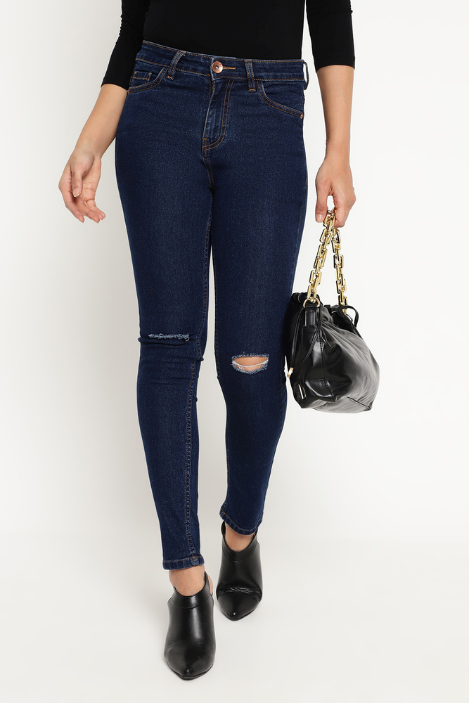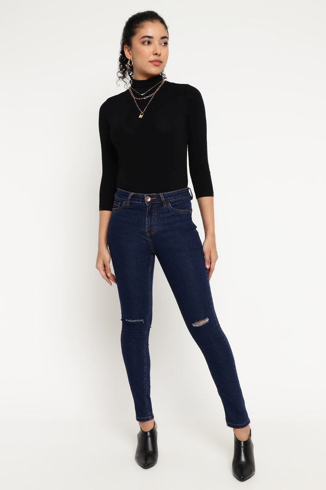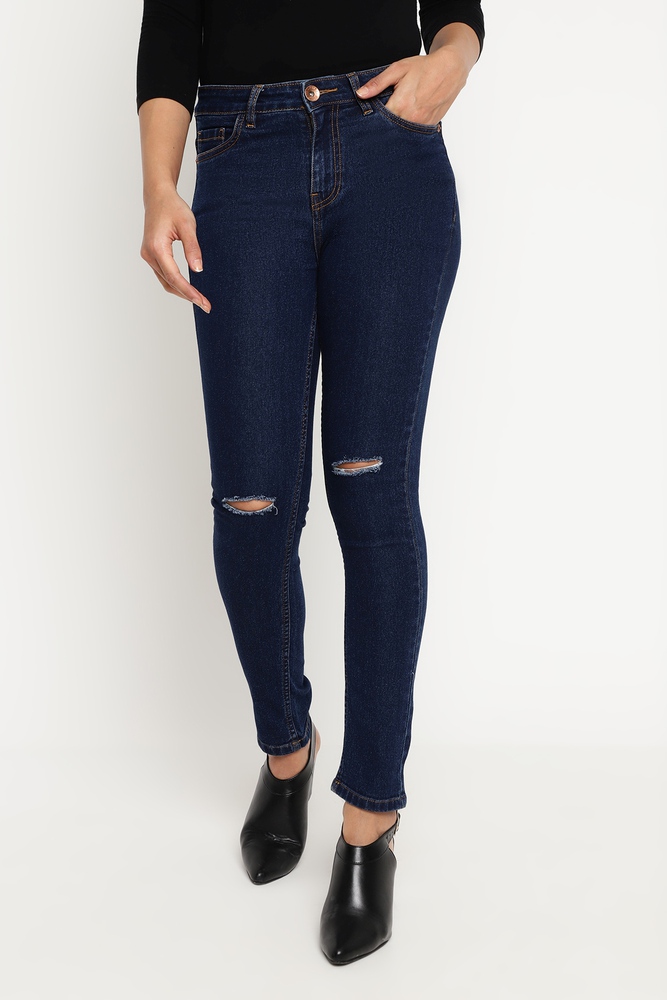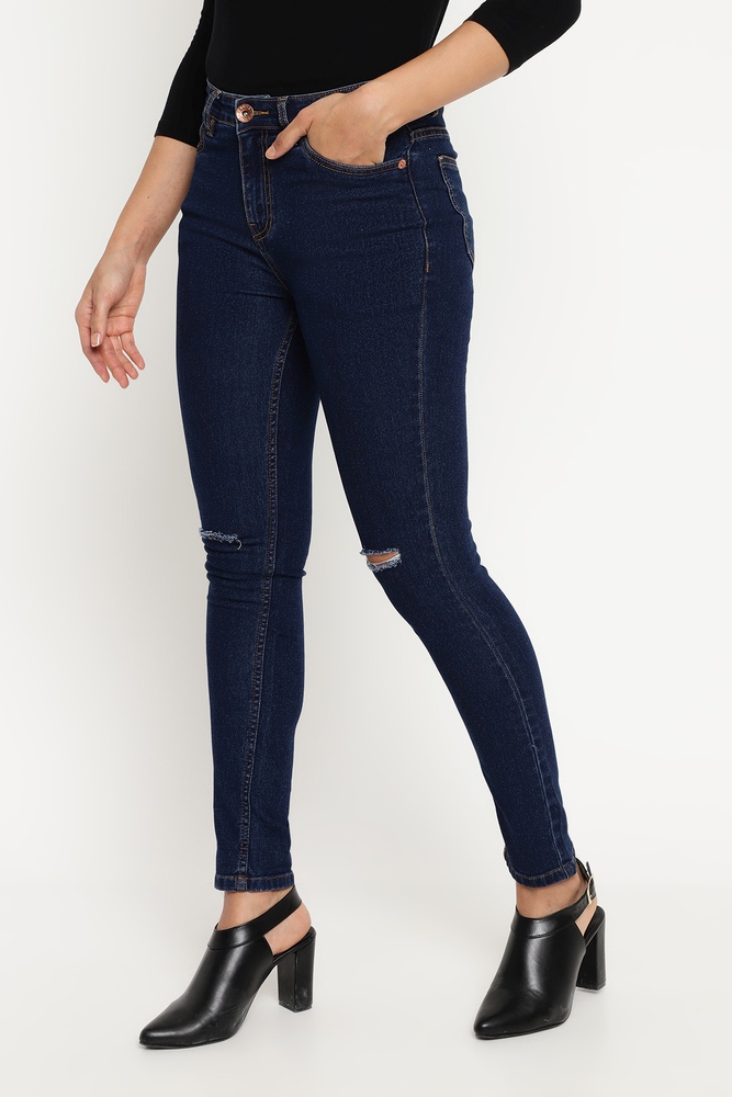 Womens Blue Distress Jeans are a classic must have for any wardrobe. These jeans are crafted from a comfortable cotton lycra with just the right amount of stretch, making them perfect for everyday wear. The blue color offers timeless style and versatility. Whether you are headed to work or out for dinner, these versatile Womens Blue Regular Jeans will keep you feeling stylish and confident all day long. Disclaimer Please note that the color of the product shown on the website may differ slightly from the actual product due to factors such as lighting and screen display.