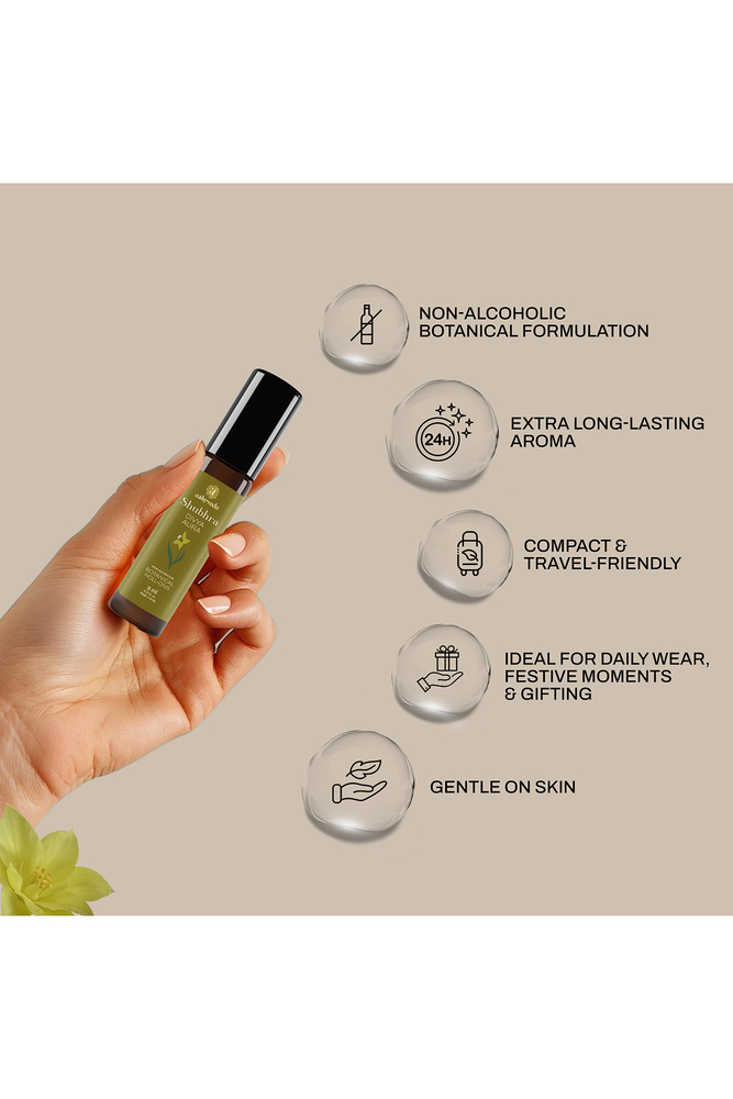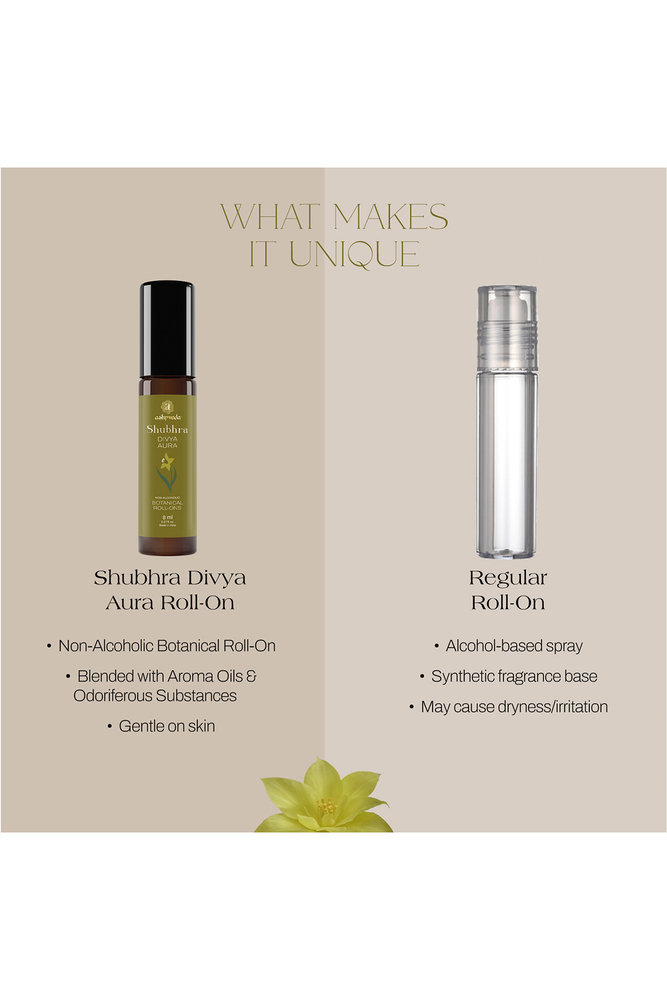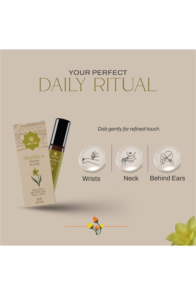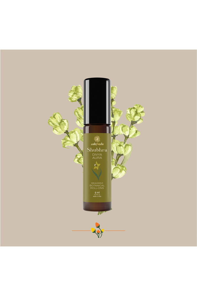 Ashpveda Divya Aura Floral Botanical Roll On Attar, Alcohol Free Aroma Oil Fragrance, Fresh Morning Blossom Scent, Travel-Friendly Attar (8 ml)