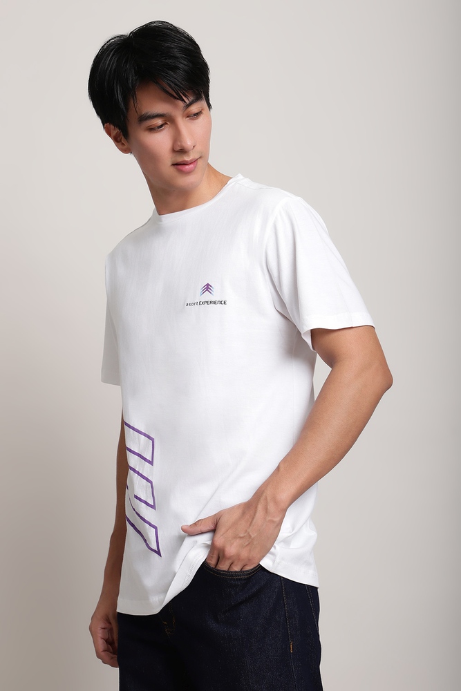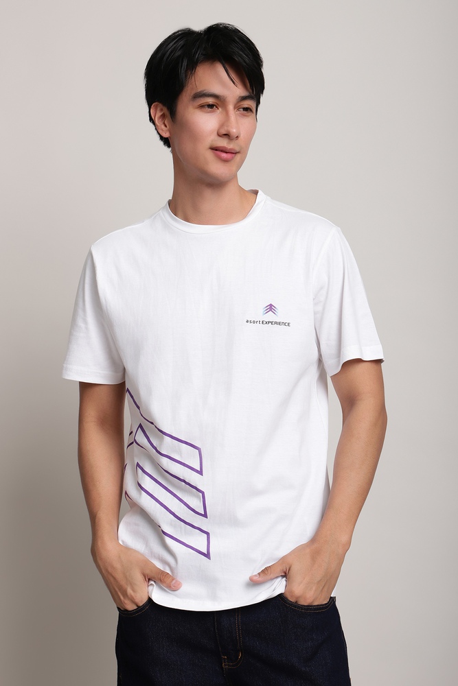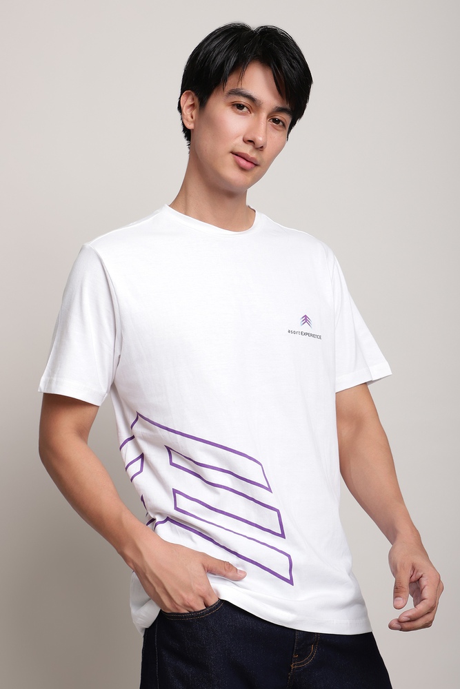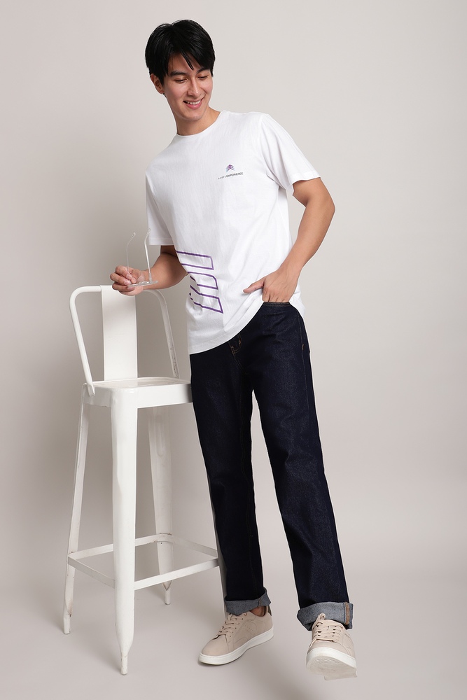 Asort Experience Men White Model Height is 6.1 feet and wearing M size.