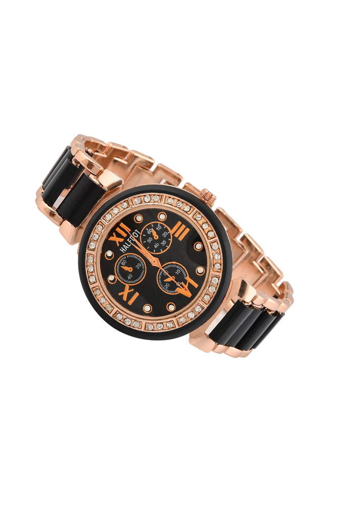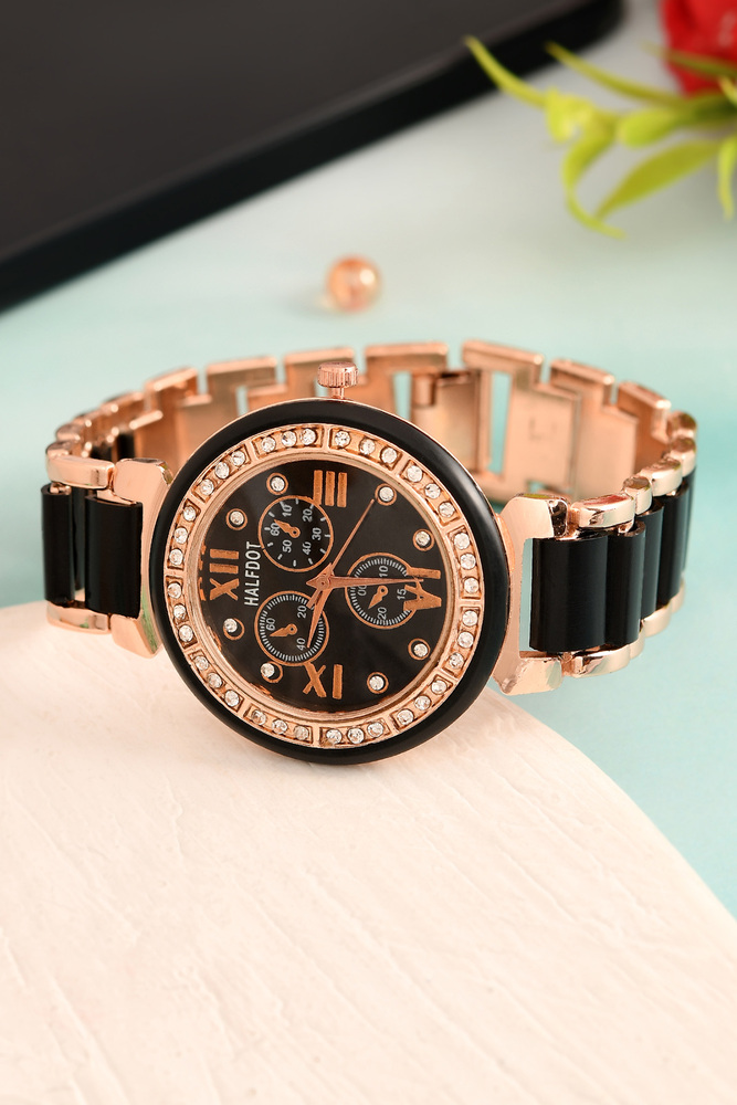 Black Round AD Stone Adjustable Beautiful Analog Wrist Watch for Women and Girls