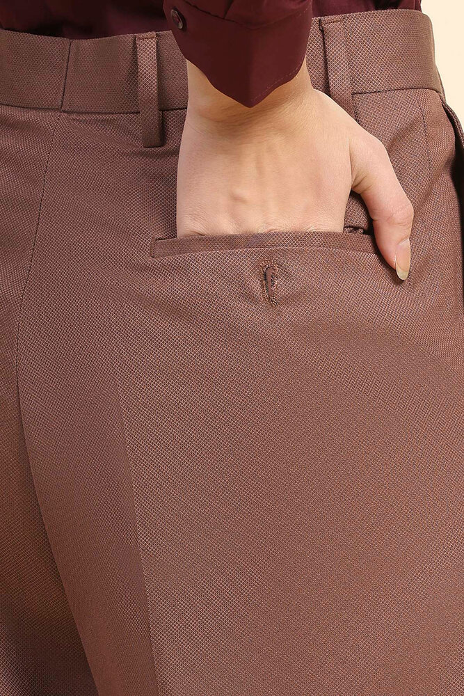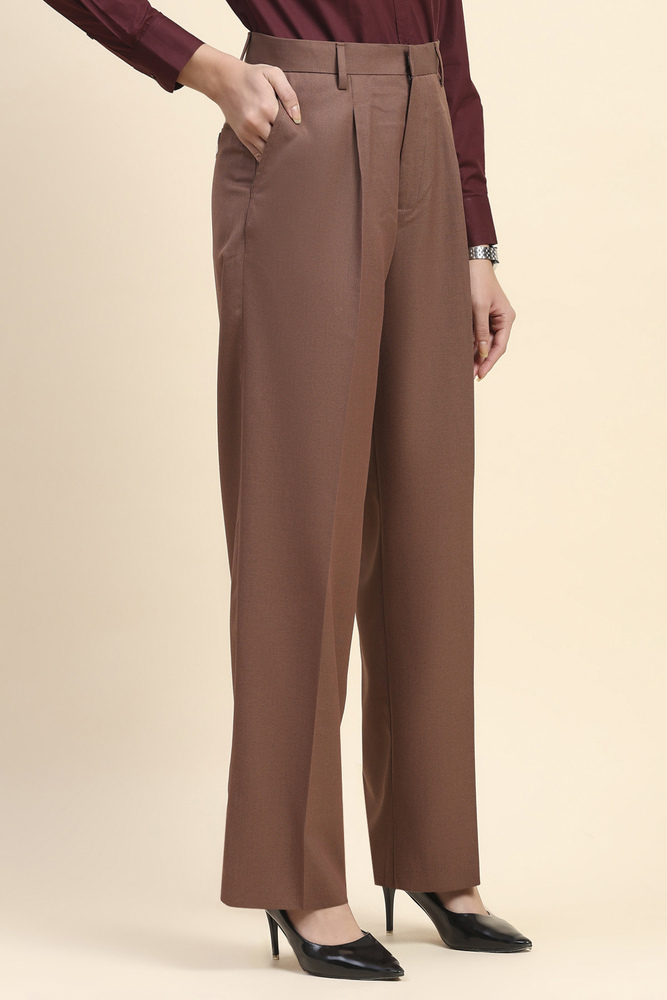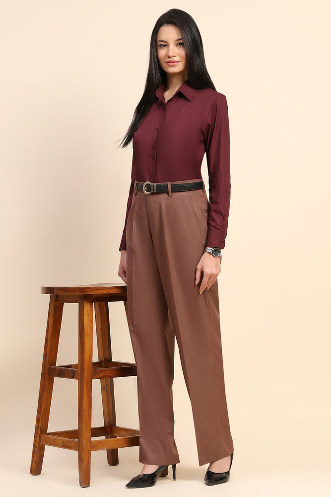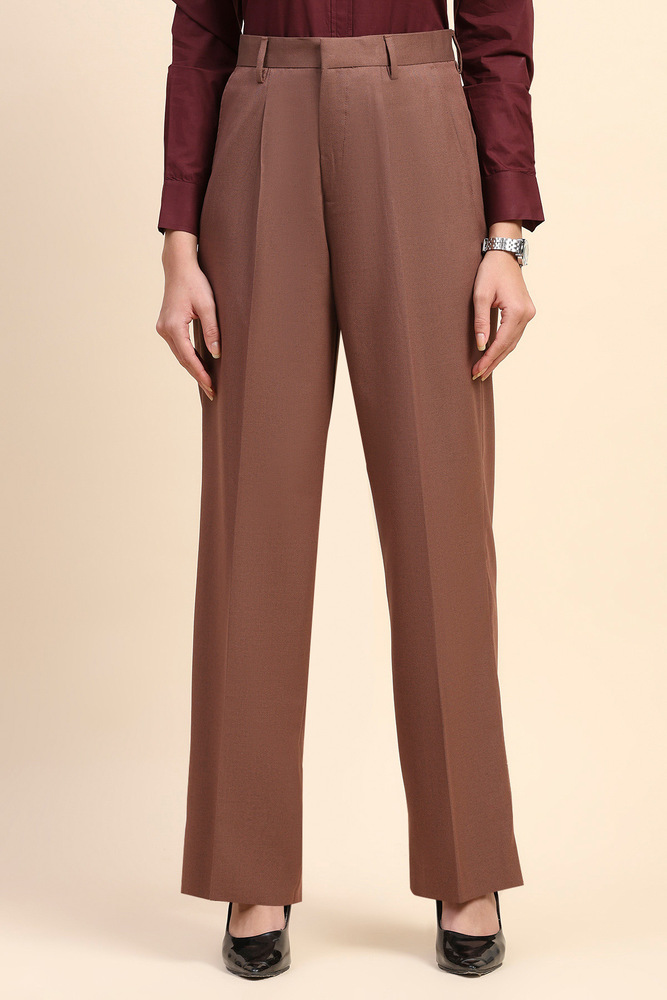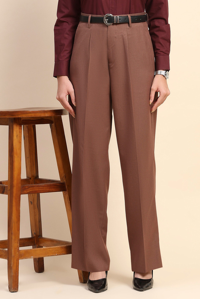 Redefine modern elegance with these high waist wide leg pants in a deep, rich copper color. Designed for comfort and style, they are crafted from a soft, breathable poly viscose blend that flows beautifully with every step. The tailored high rise fit enhances your silhouette, making them a versatile must have for both work and weekends. Model height is 5.8 feet and wearing M size. Disclaimer Please note that the color of the product shown on the website may differ slightly from the actual product due to factors such as lighting and screen display.