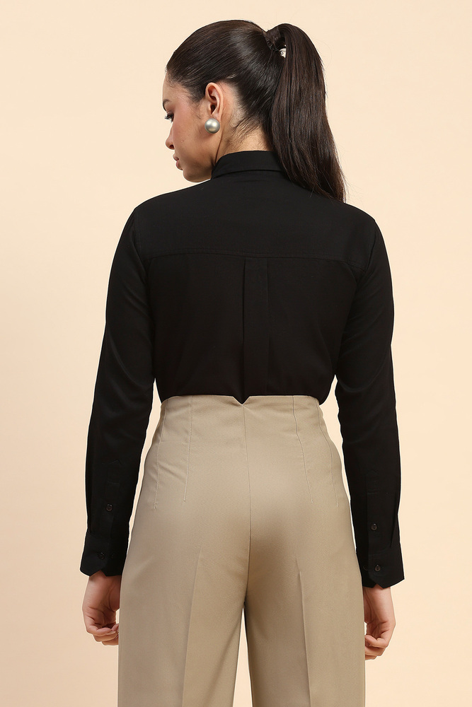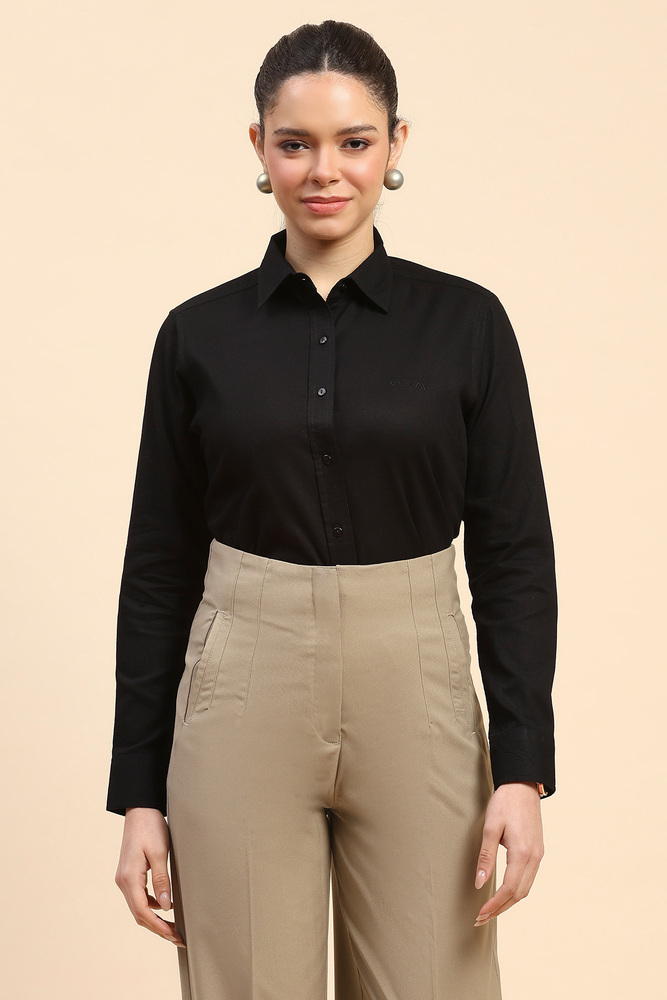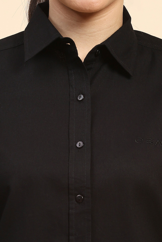 Cape and Cloth Women Black Textured Dobby Shirt with Modern Tailored Fit