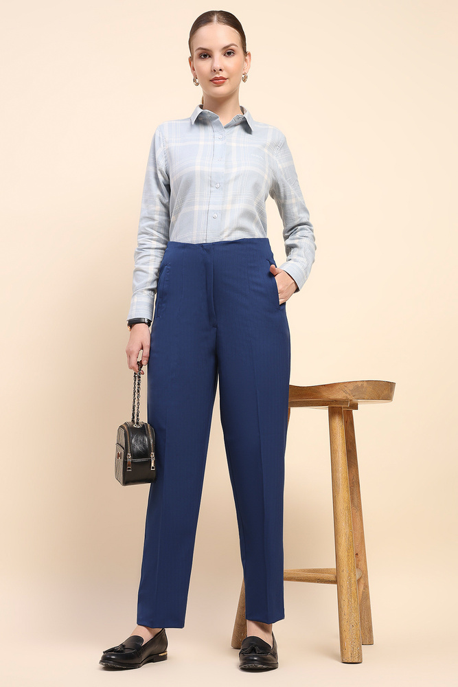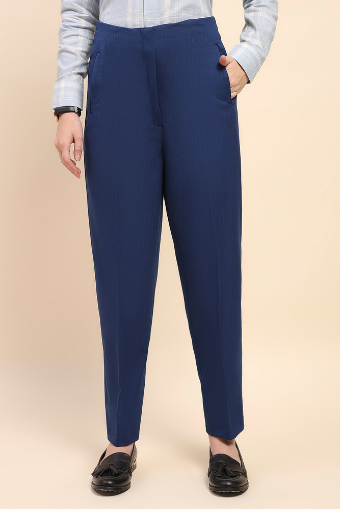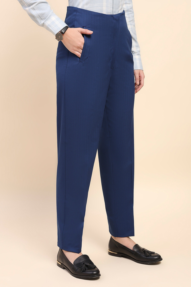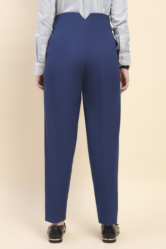 Cape and Cloth Women High Waist Blue Pleated Cigarette Pant