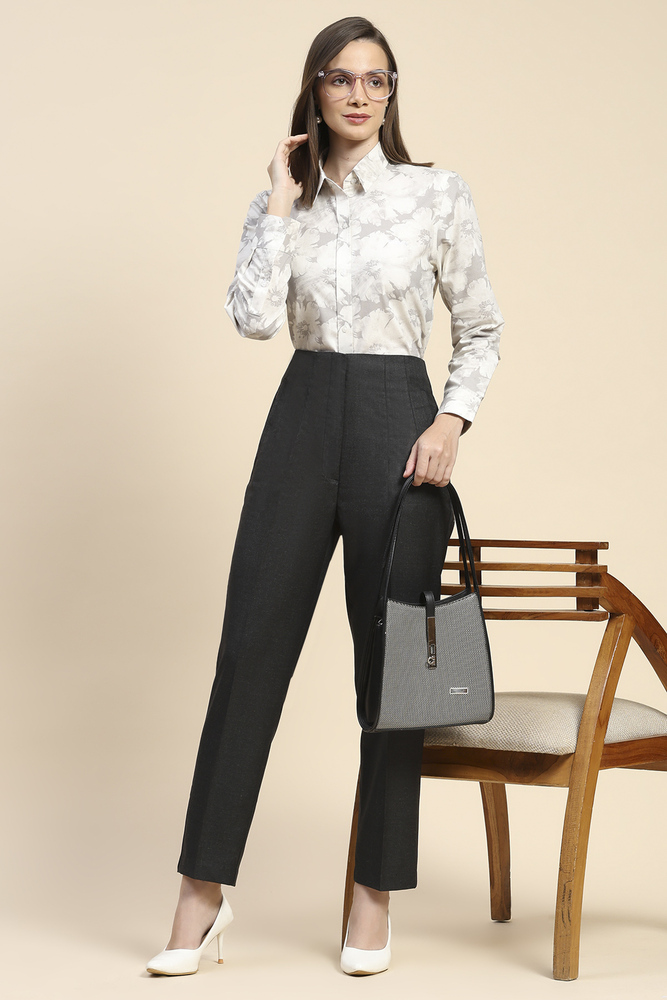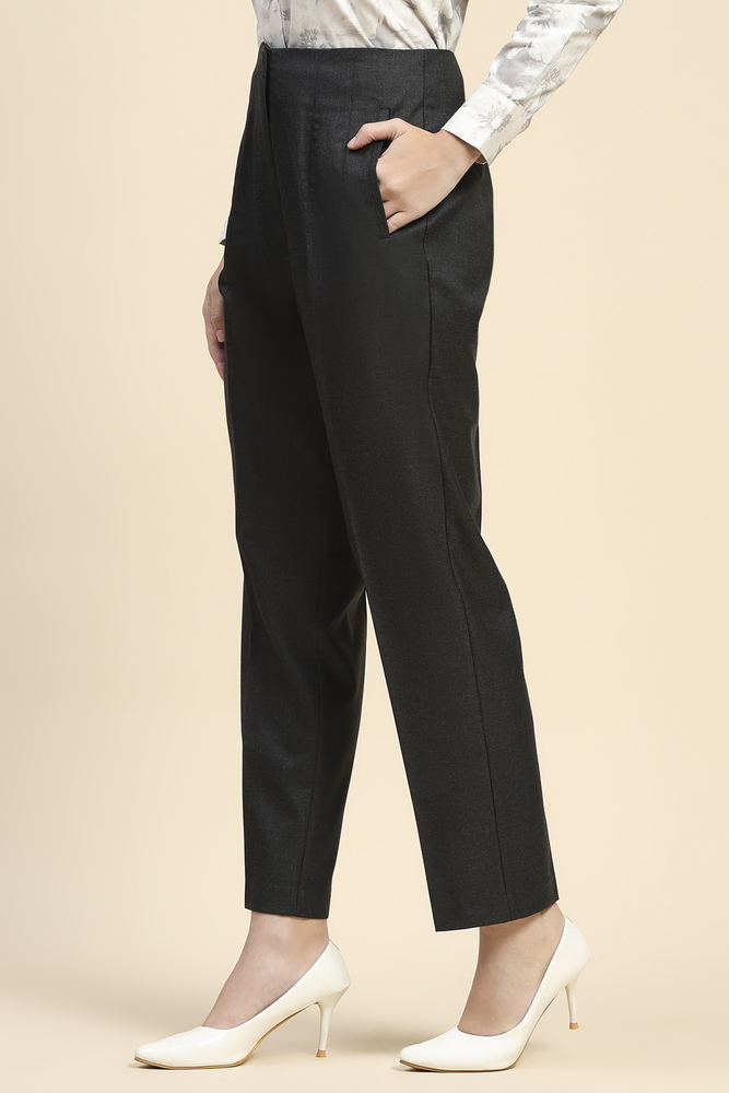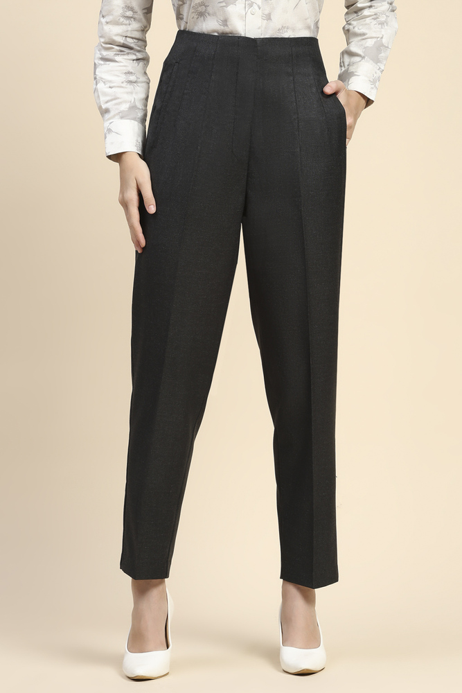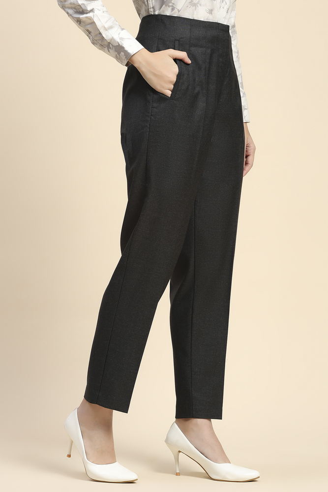 Cape and Cloth Women High Waist Charcoal Grey Pleated Cigarette Pant