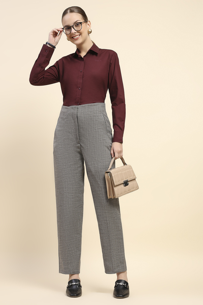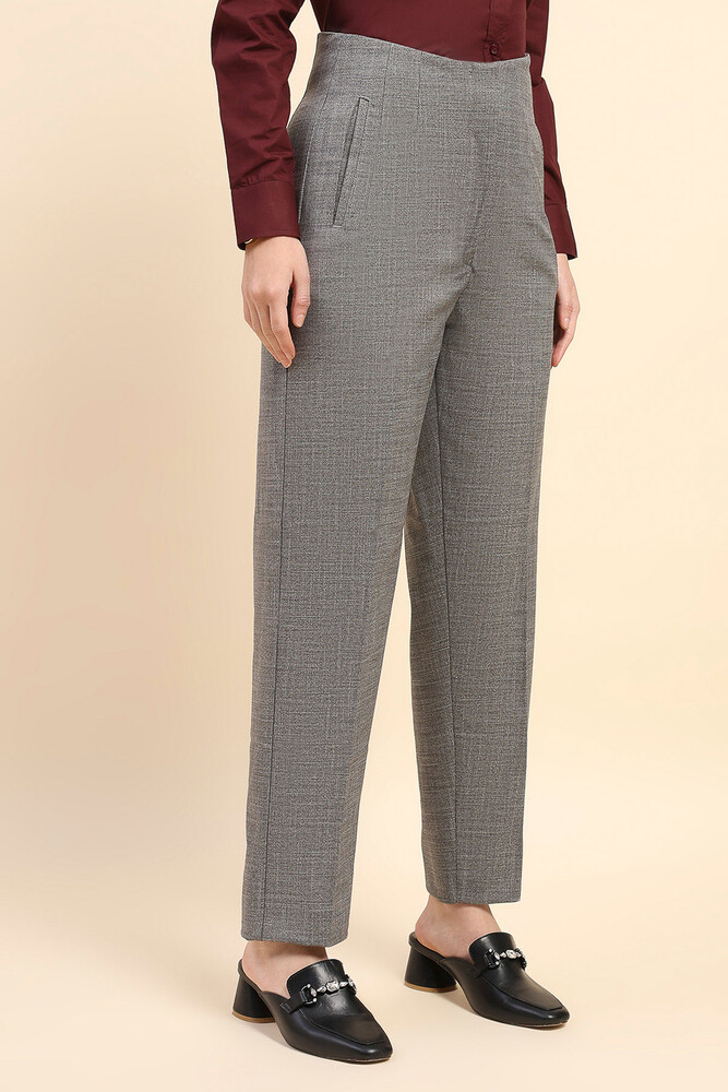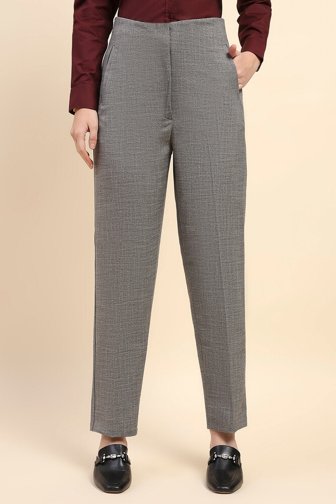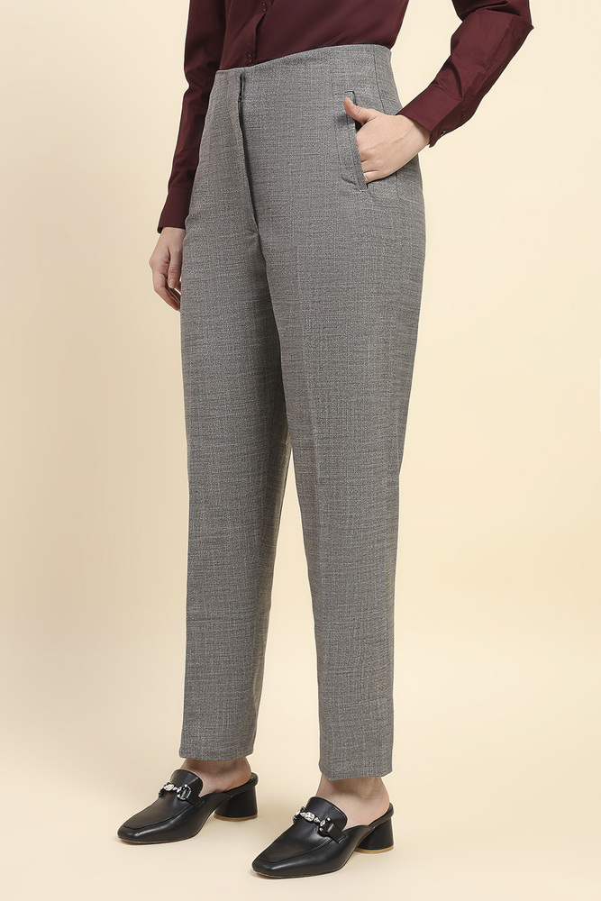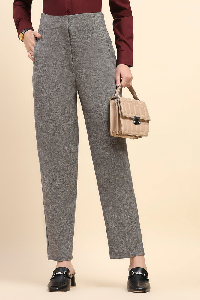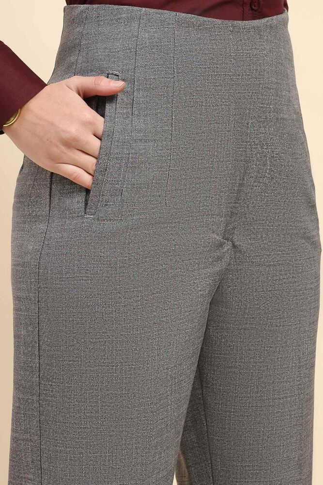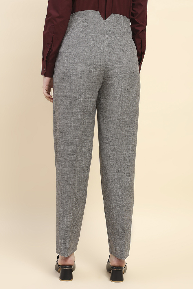 Cape and Cloth Women High Waist Grey Pleated Cigarette Pant