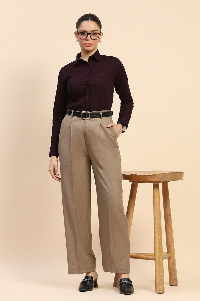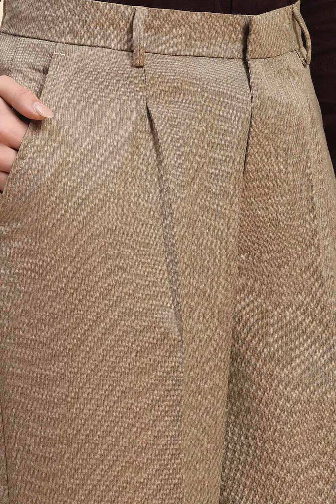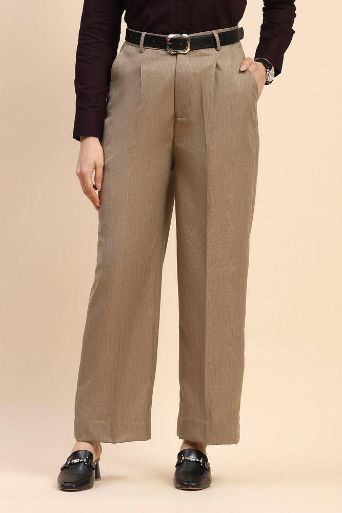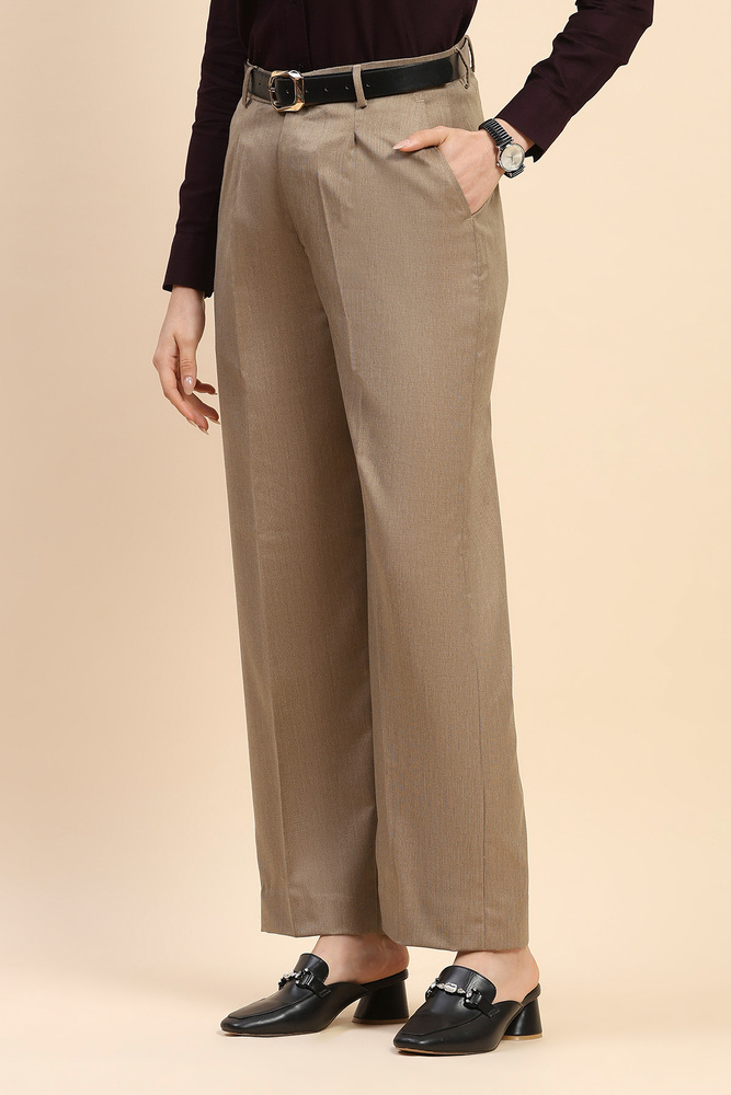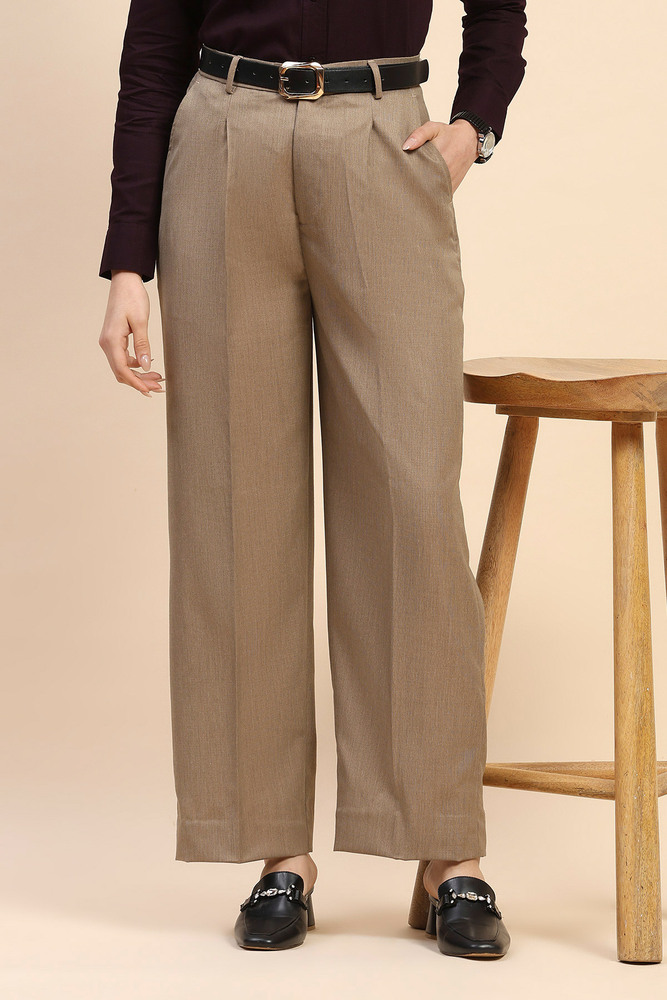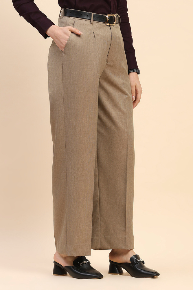 These light brown wide leg pants are made from 70% polyester and 30% viscose, offering a soft texture with lasting structure. The blend supports easy maintenance and gives a graceful flow suitable for both formal and semi casual occasions. Model height is 5.7 feet and wearing M size. Disclaimer - Please note that the color of the product shown on the website may differ slightly from the actual product due to factors such as lighting and screen display.