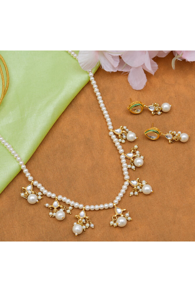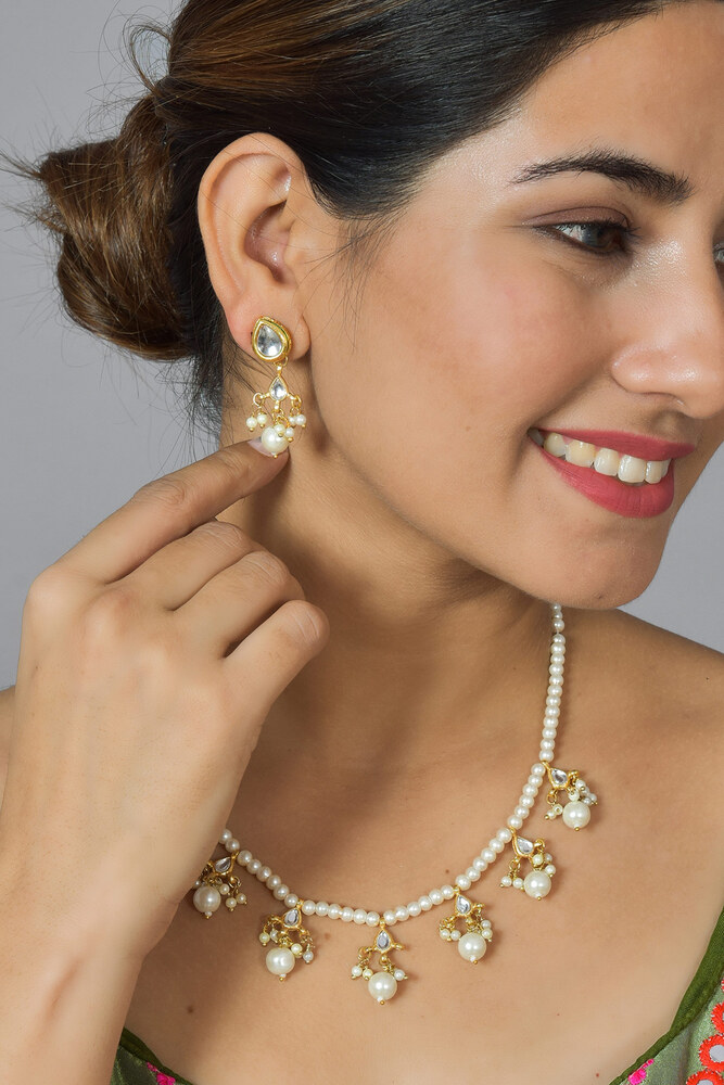 Charming Small Drops Beads Pearl Choker Necklace Earring Set