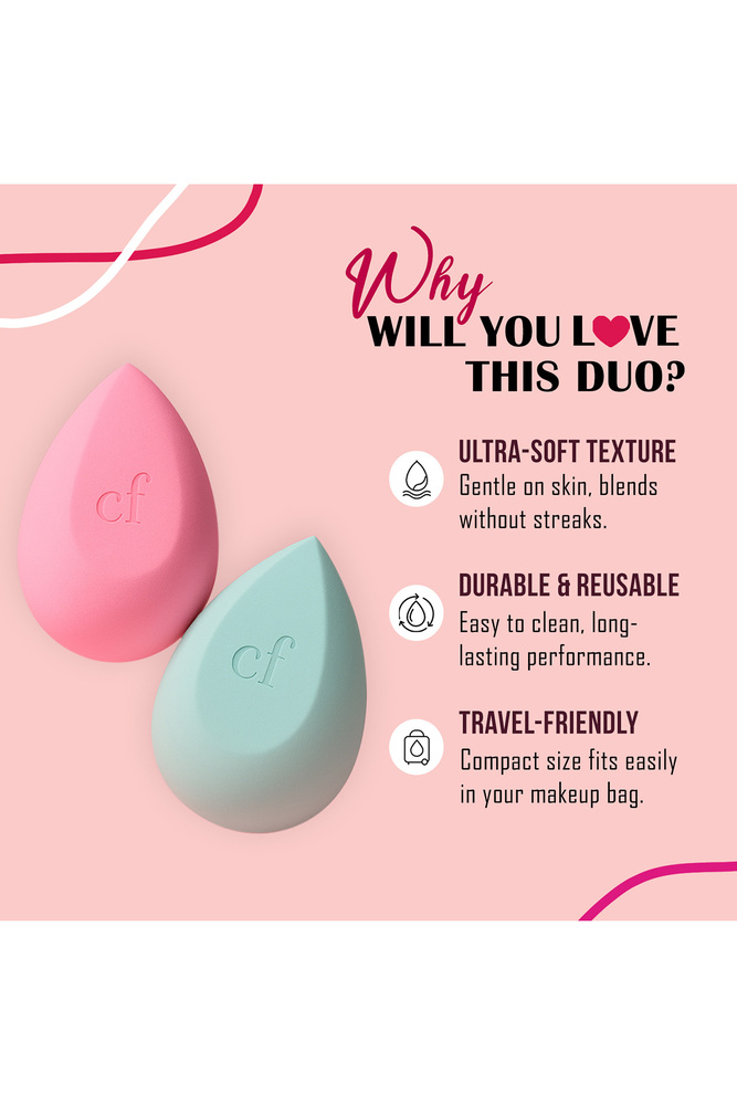 ColorFlix 2 Pcs Makeup Blender Sponge Set, Soft Latex Free Beauty Sponge for Foundation Concealer, Cream & Blending, Reusable & Washable Egg Shaped Makeup Applicator for Smooth Finish