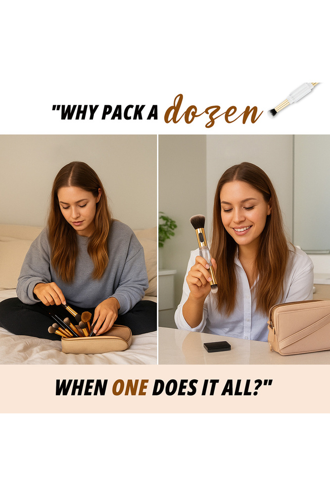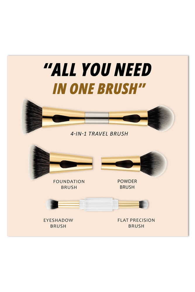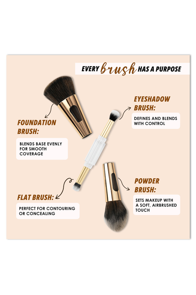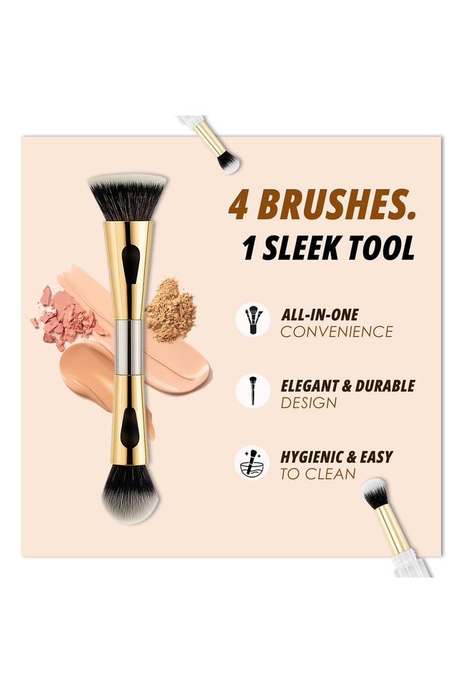 ColorFlix 4 in 1 Travel Makeup Brush Set, Dual Ended Multi Purpose Foundation, Blush, Contour & Eyeshadow Brush, Compact, Portable & Washable Cosmetic Brush for Travel & Daily Use