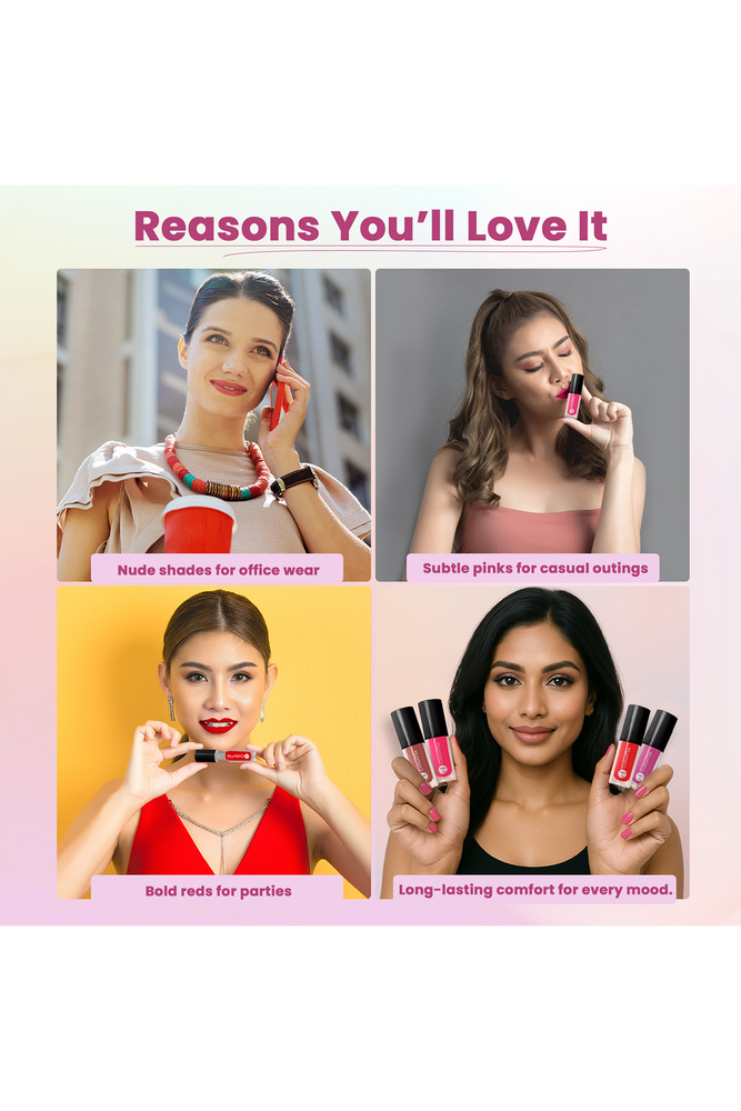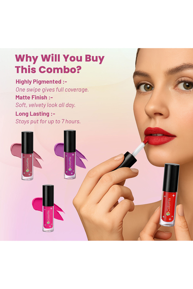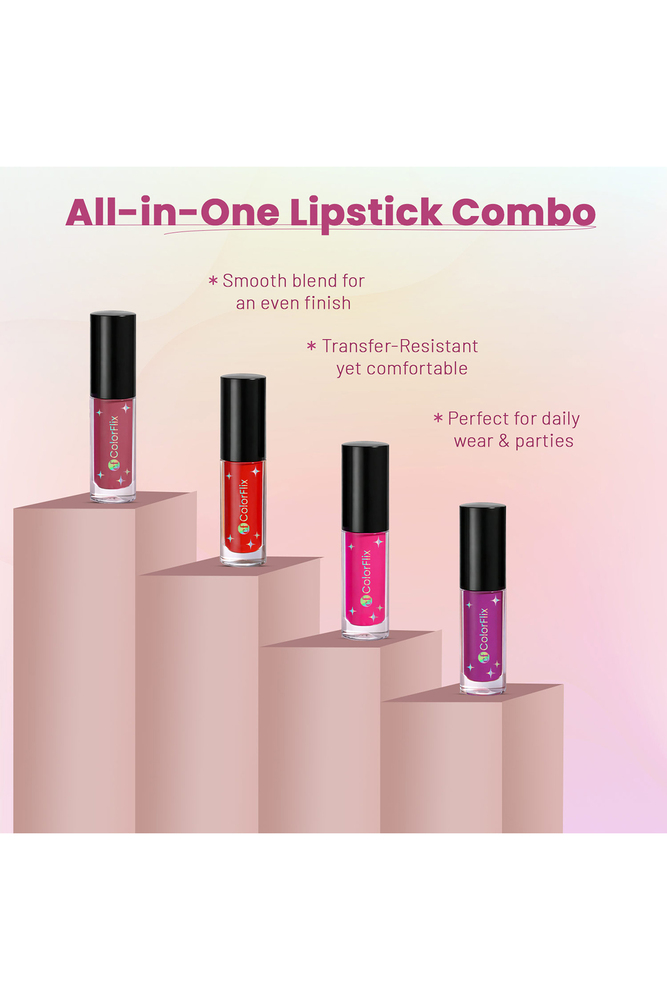 ColorFlix Glam Mini Lip Kit Set of 4 UltraStay Long Lasting Lipsticks, Matte & Creamy Texture, Perfect for Party Look & Gifting (2ml Each)