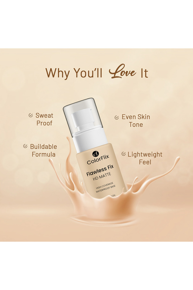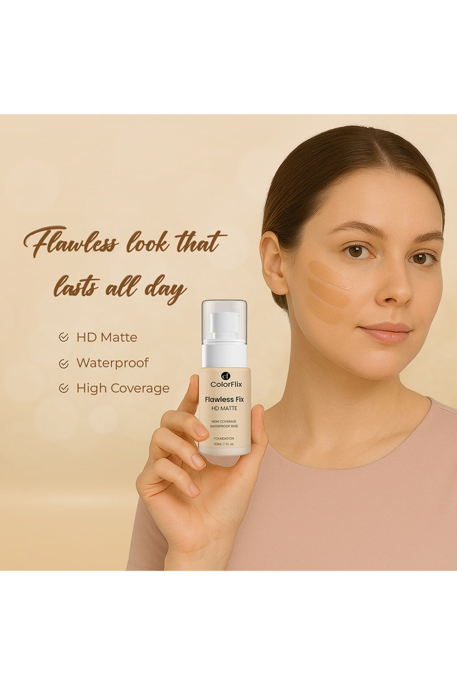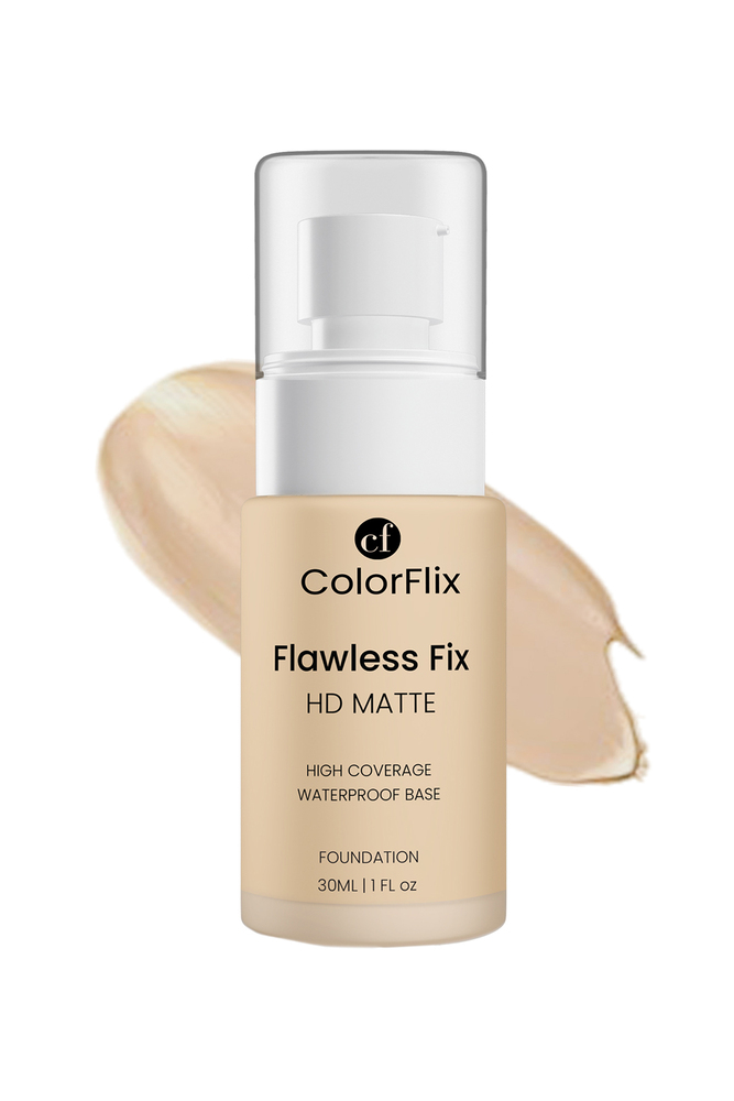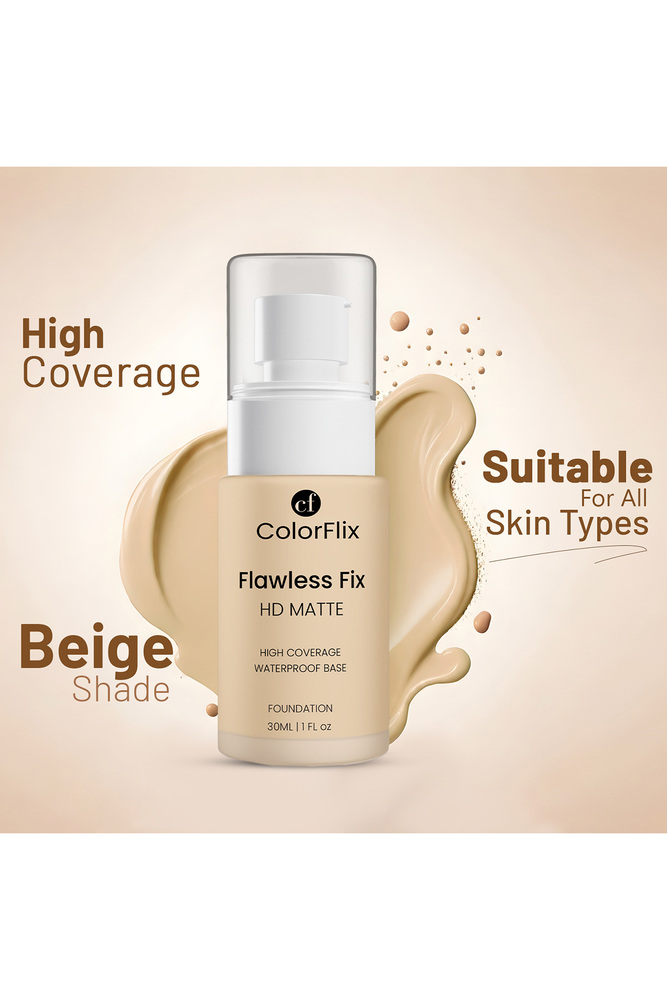 ColorFlix HD Matte Foundation, Flawless Fix, High Coverage Waterproof & All Skin Types Beige Glow 30ml