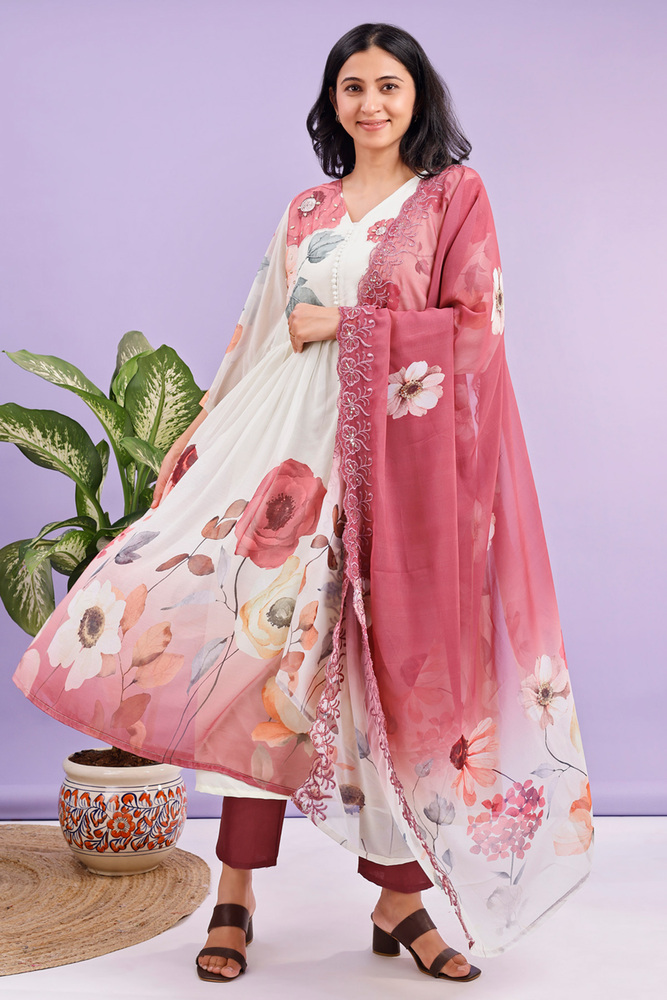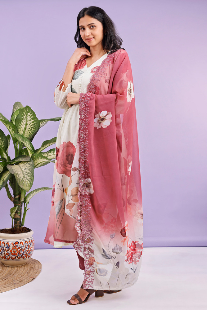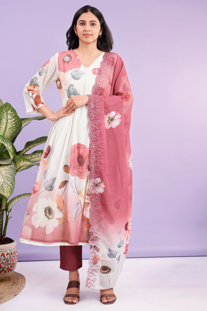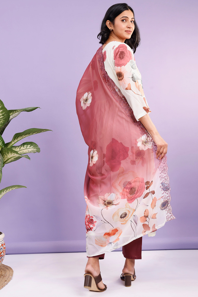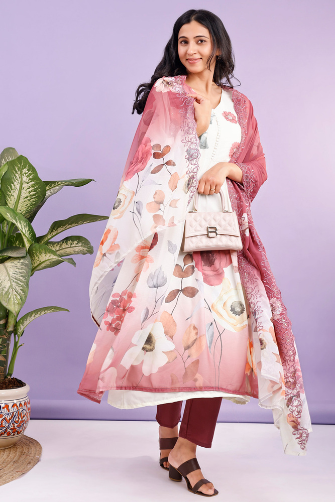 Kurti plazo dupatta set for women made from pure chiffon kurti pure santoon plazo and georgette dupatta for elegant look.