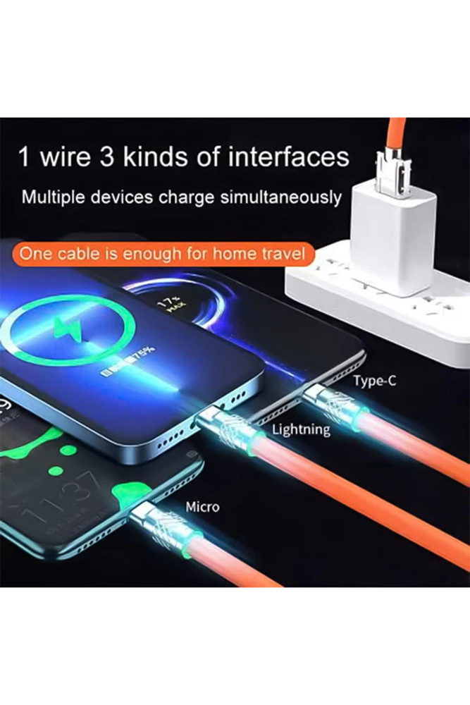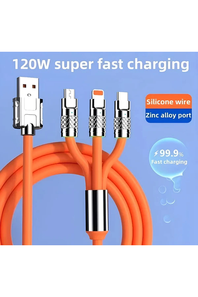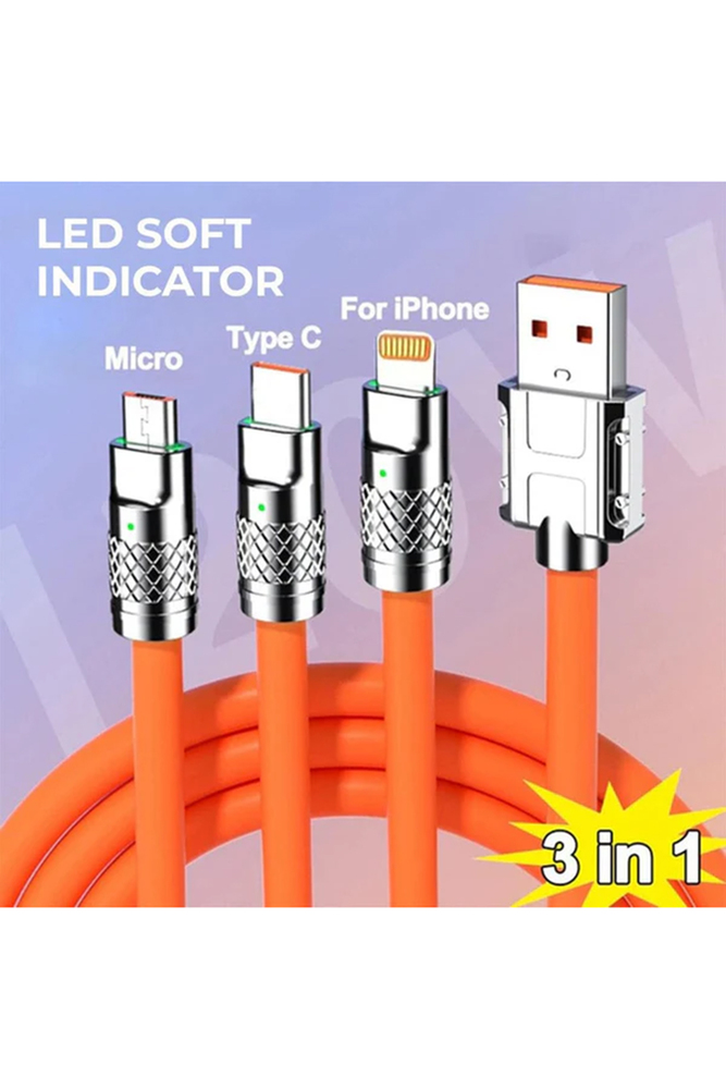 Tired of carrying multiple cables for different devices? Say hello to the 3 in 1 Fast Charging Data Cable  the only charging cable you'll ever need! Whether you use an iPhone, Android, or any other device, this cable is designed to keep your gadgets powered up with fast, efficient, and safe charging.