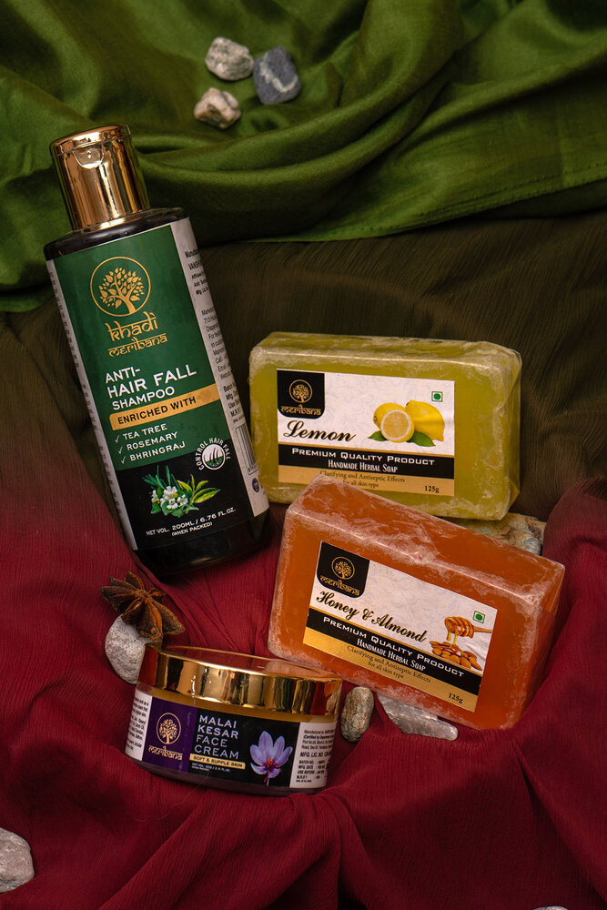 1 Anti Hairfall Shampoo, 1 Malai Kesar cream, 1 Lemon & Honey Almond Soap