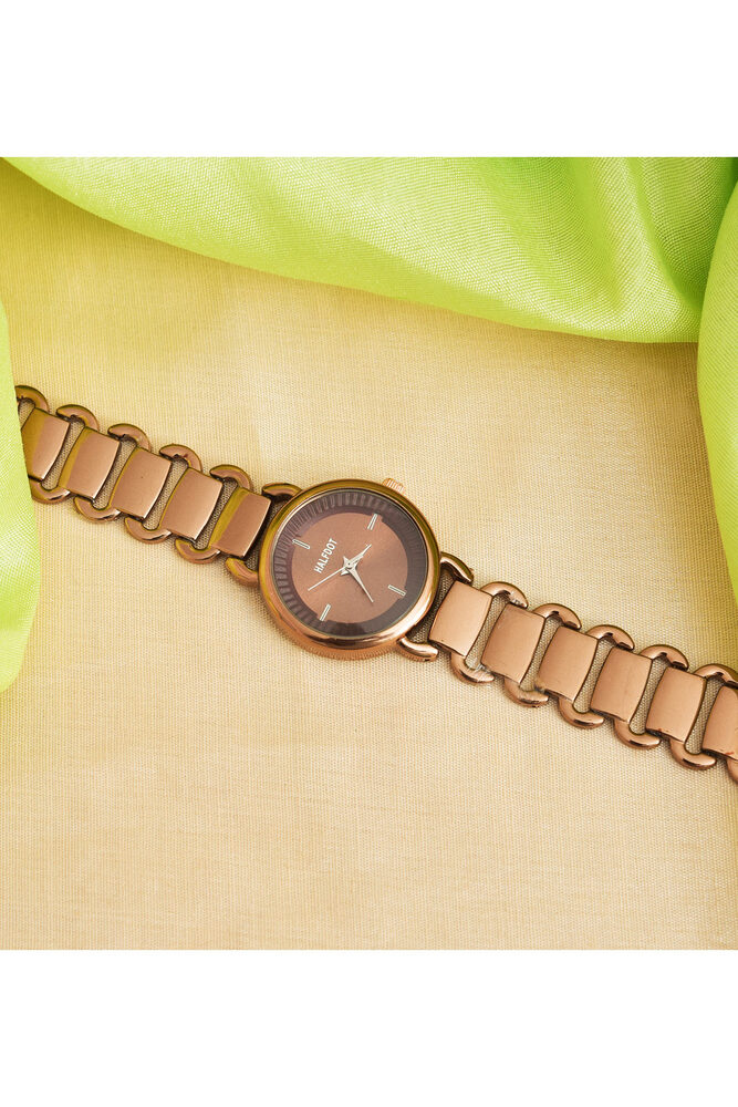 Gold Copper Round Adjustable Beautiful Analog Wrist Watch For Professional Women and Girls