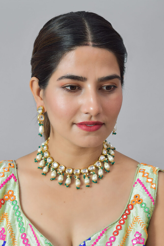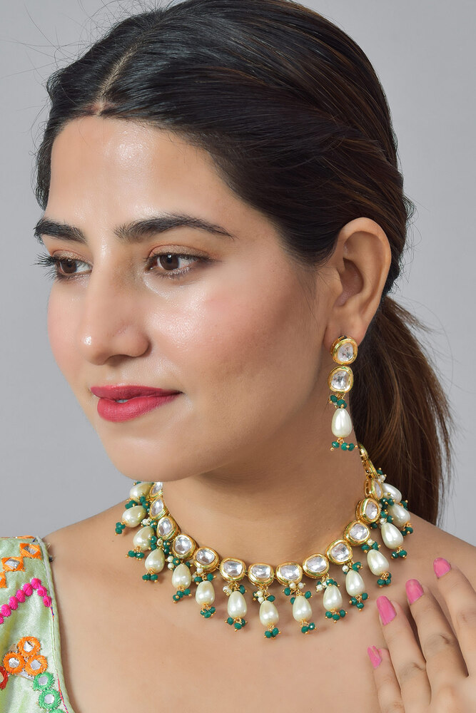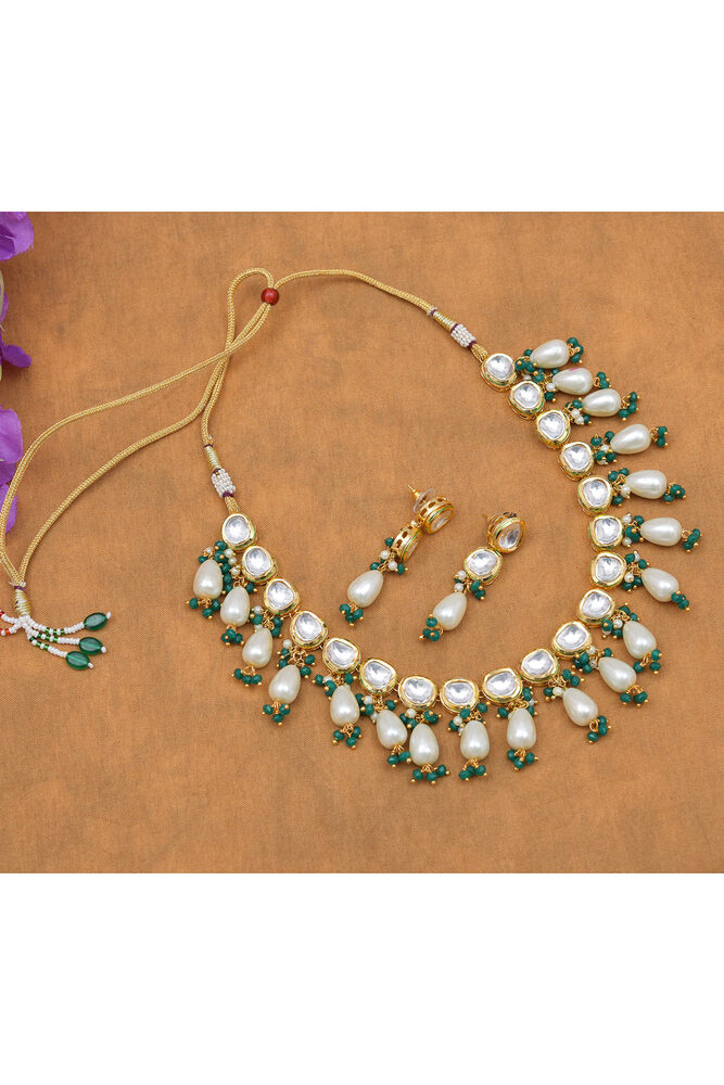 Green Kundan Crystal Prince Necklace Earring Set