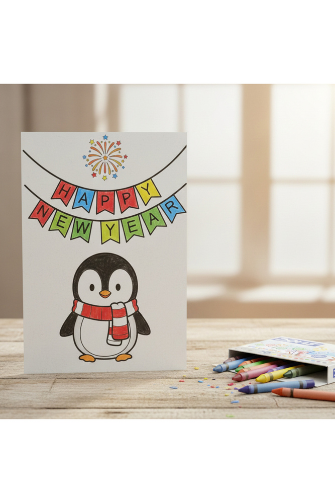 Half Engineer Gifts Kids DIY New Year Greeting Card with Crayons Set A5 Size Craft Card 2026