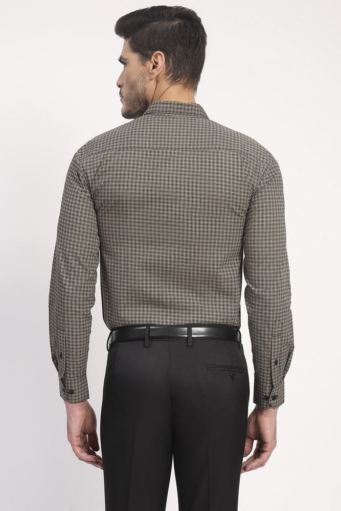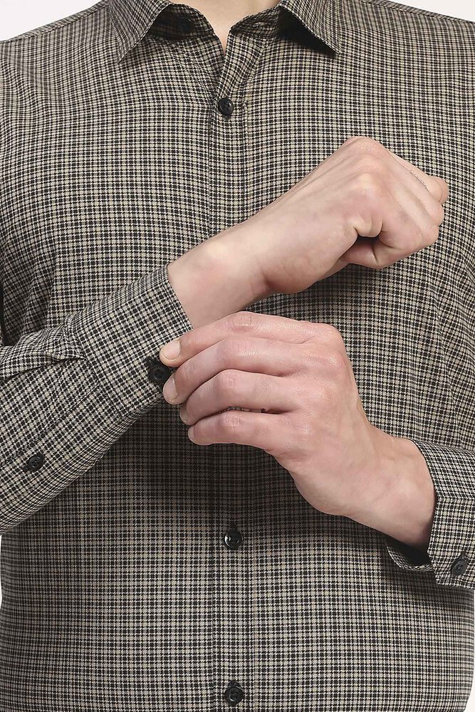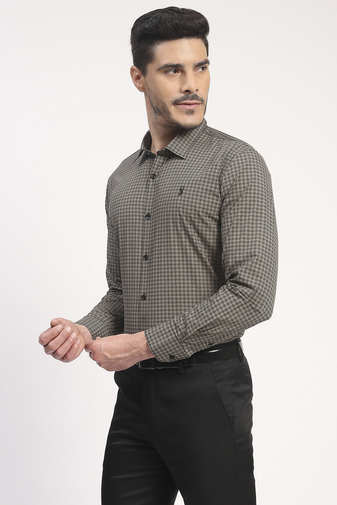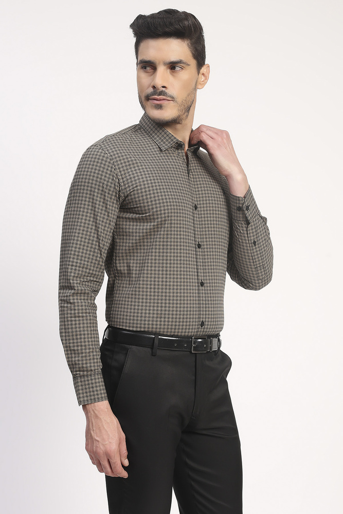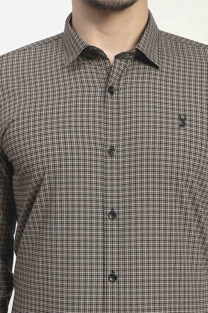 Ifazone Men Beige and Black Micro Check Cotton Shirt