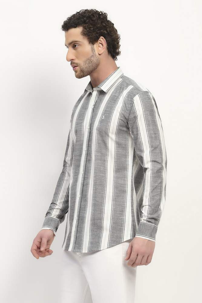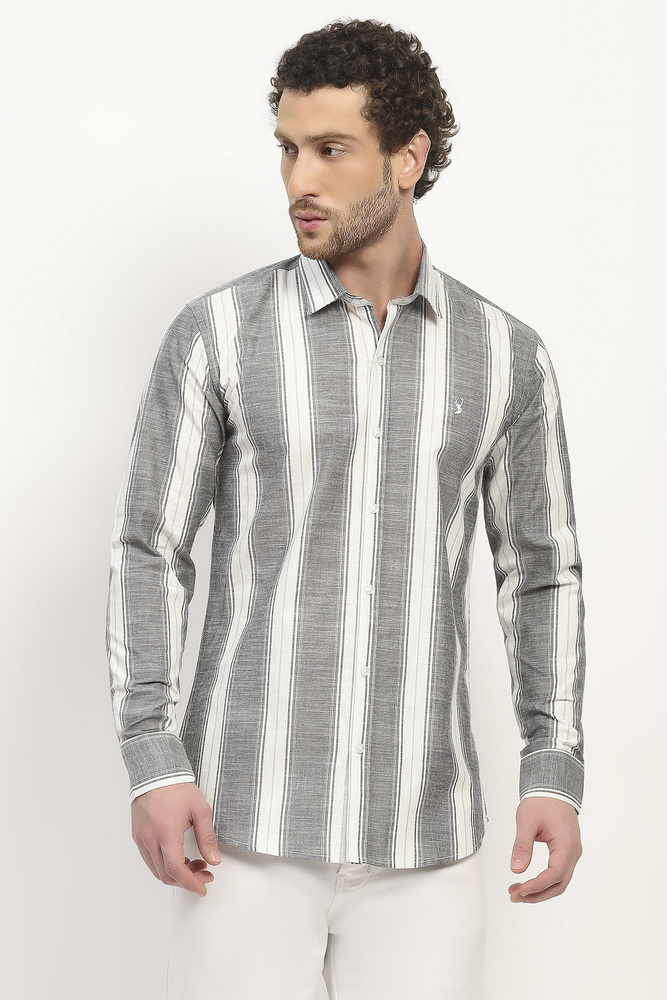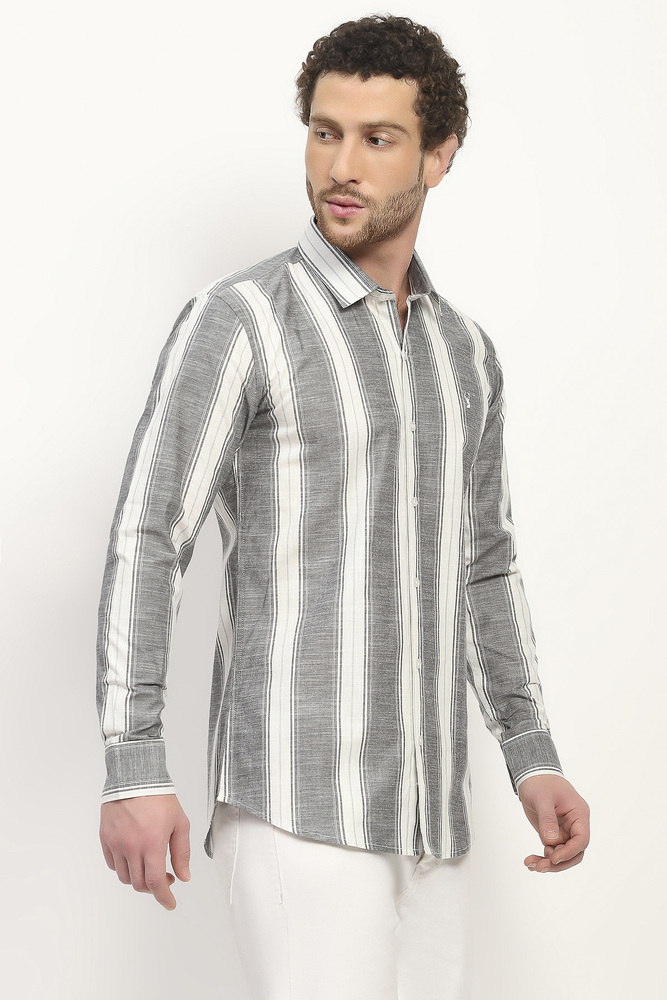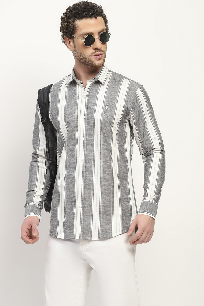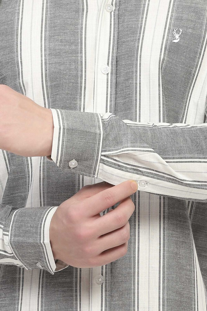 Ifazone Men Grey 100% Cotton Shirt Solid Shirt
