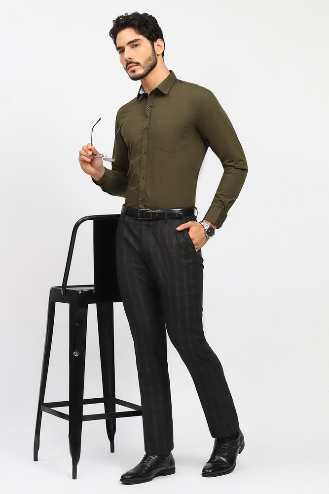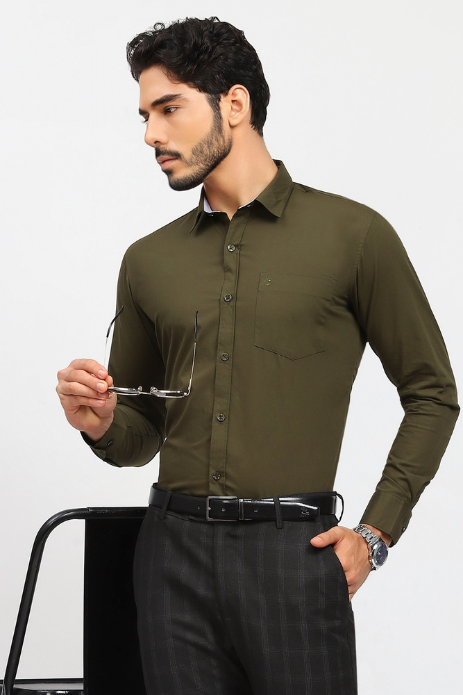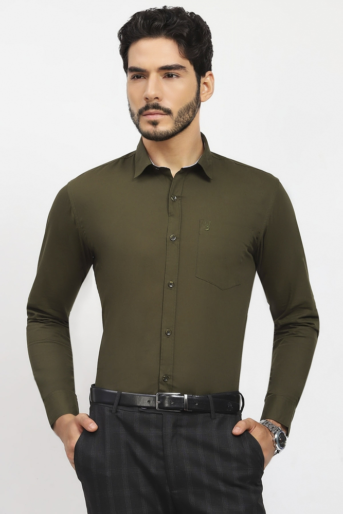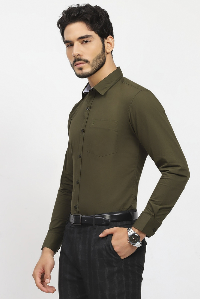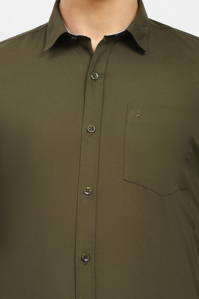 Ifazone Men Olive Green 100% Cotton Solid Poplin Shirt