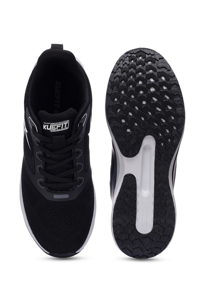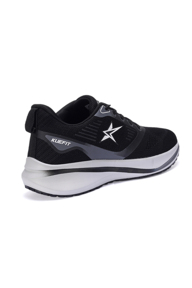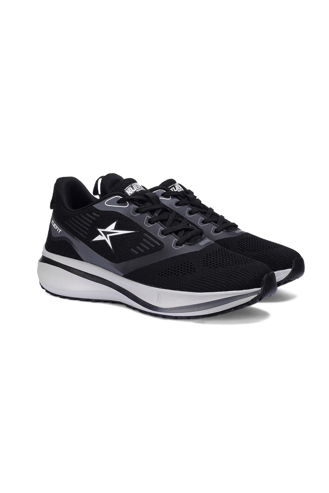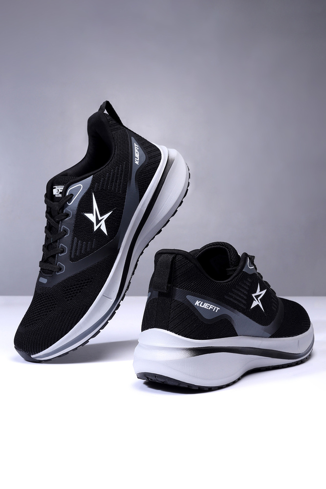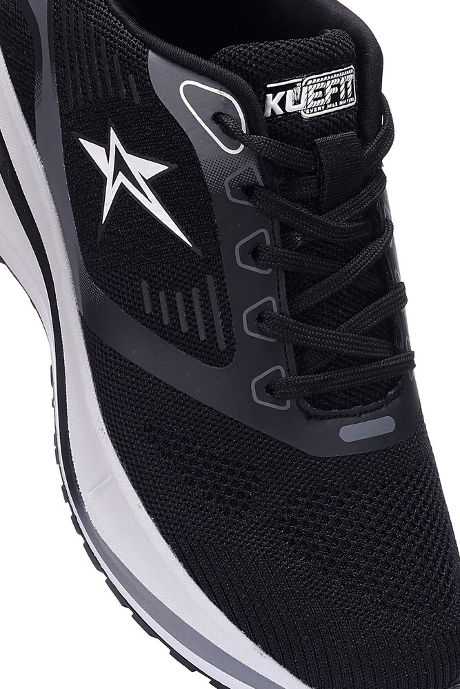 Step up your performance with these Kuefit men black sports running shoes, designed for style, comfort, and durability. Crafted with a breathable mesh upper and cushioned sole, these shoes provide excellent support and ventilation during workouts, runs, or casual wear. The sturdy outsole ensures superior grip and stability on different surfaces, while the sleek black design with star detailing adds a modern sporty touch. Perfect for fitness enthusiasts and everyday active wear. Disclaimer - Please note that the color of the product shown on the website may differ slightly from the actual product due to factors such as lighting and screen display.