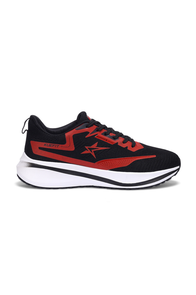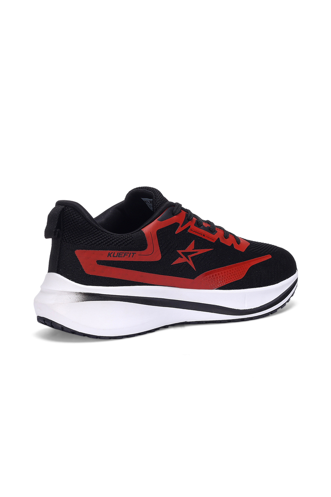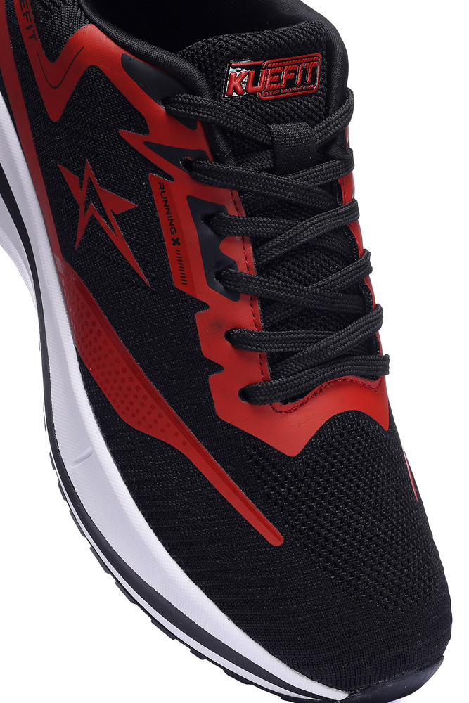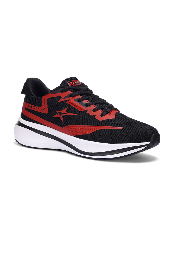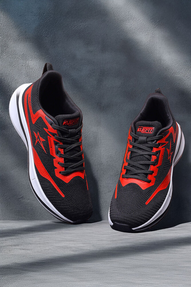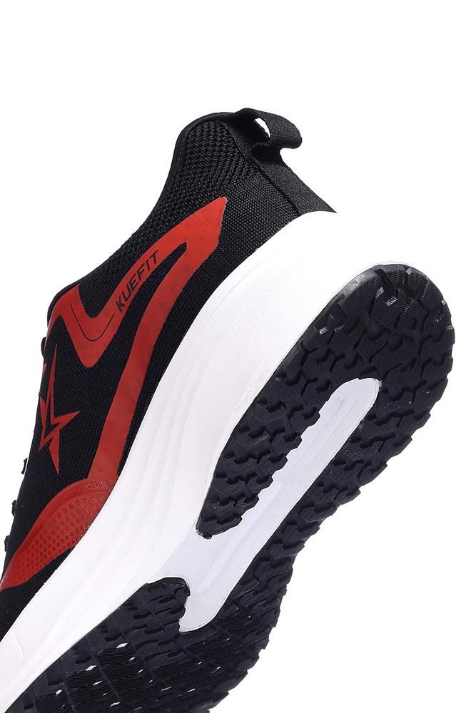 Boost your active lifestyle with these Kuefit men black and red sports running shoes, designed for performance and comfort. Featuring a breathable mesh upper, cushioned midsole, and durable rubber outsole, these shoes provide excellent grip, support, and shock absorption for running, training, or everyday wear. The bold black base with striking red accents gives a modern sporty look, making them both stylish and functional. Perfect for fitness enthusiasts and casual outings alike. Disclaimer - Please note that the color of the product shown on the website may differ slightly from the actual product due to factors such as lighting and screen display.