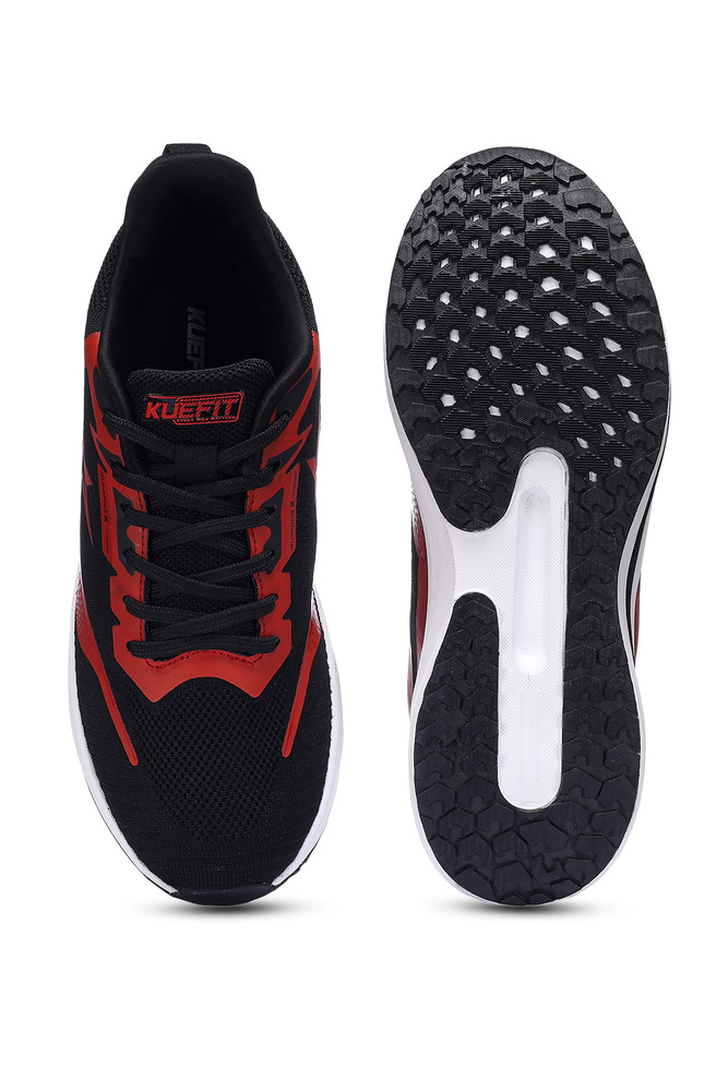 Kuefit Men Black and Red Air Mesh Knitted Sports Shoes