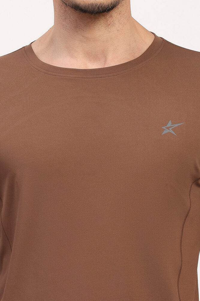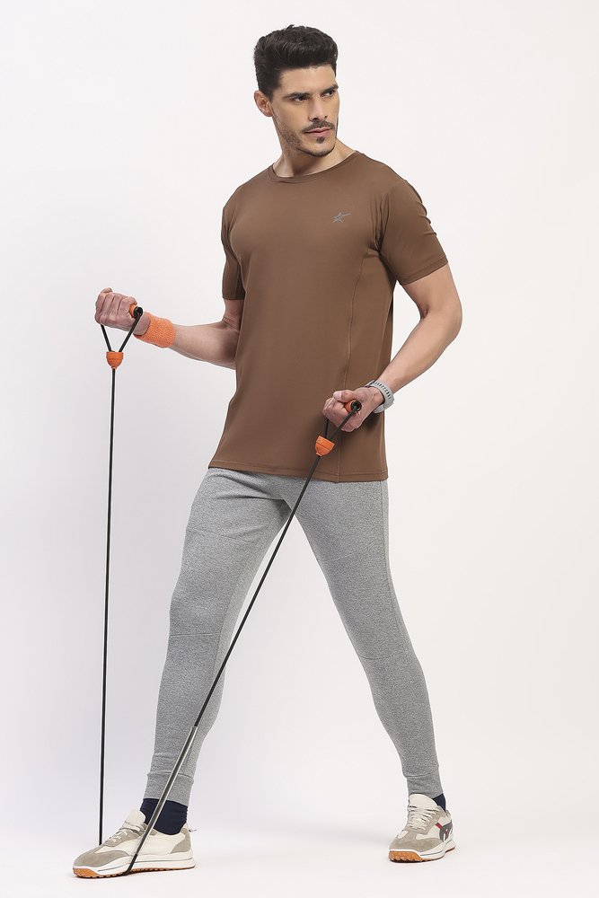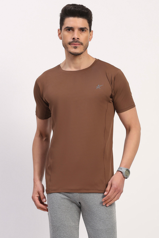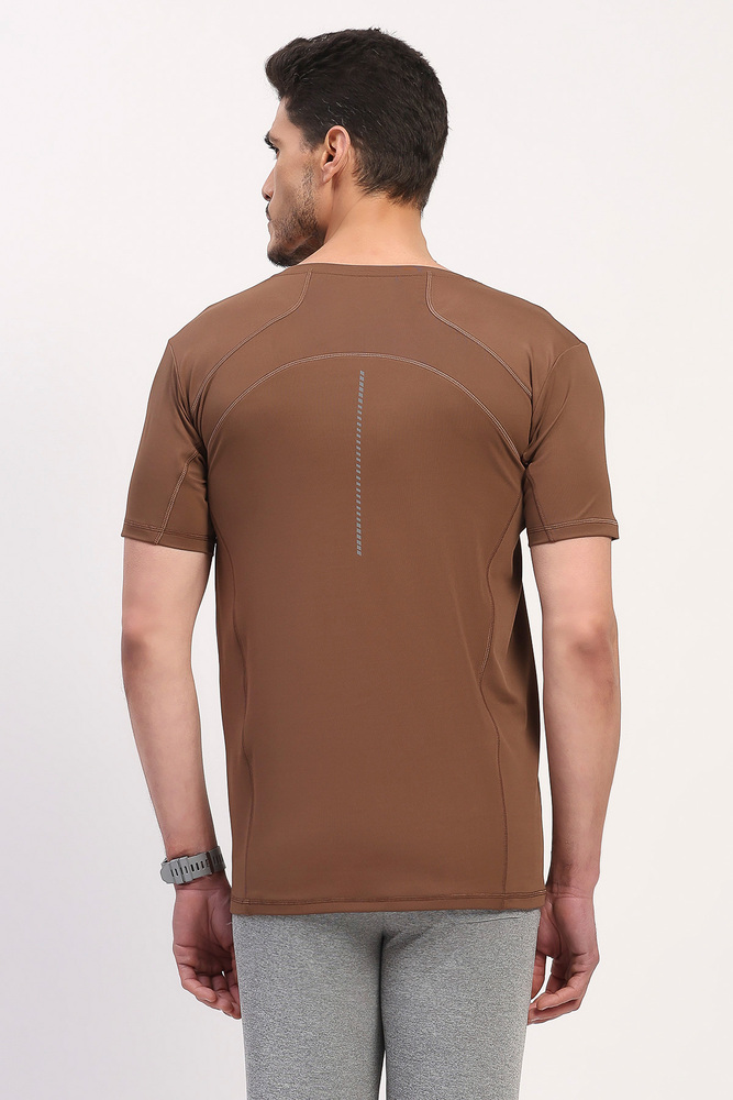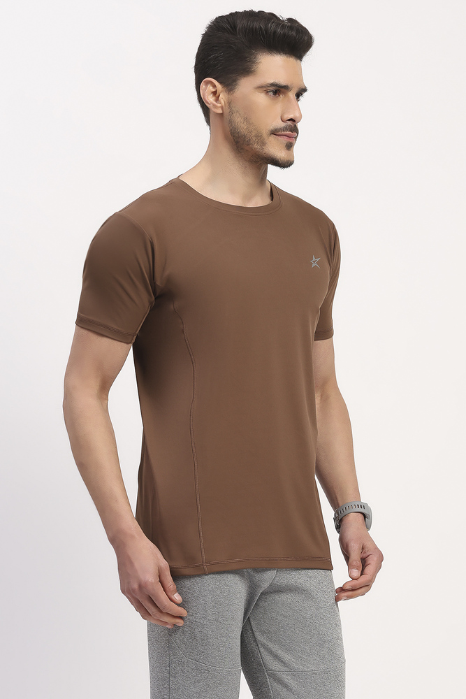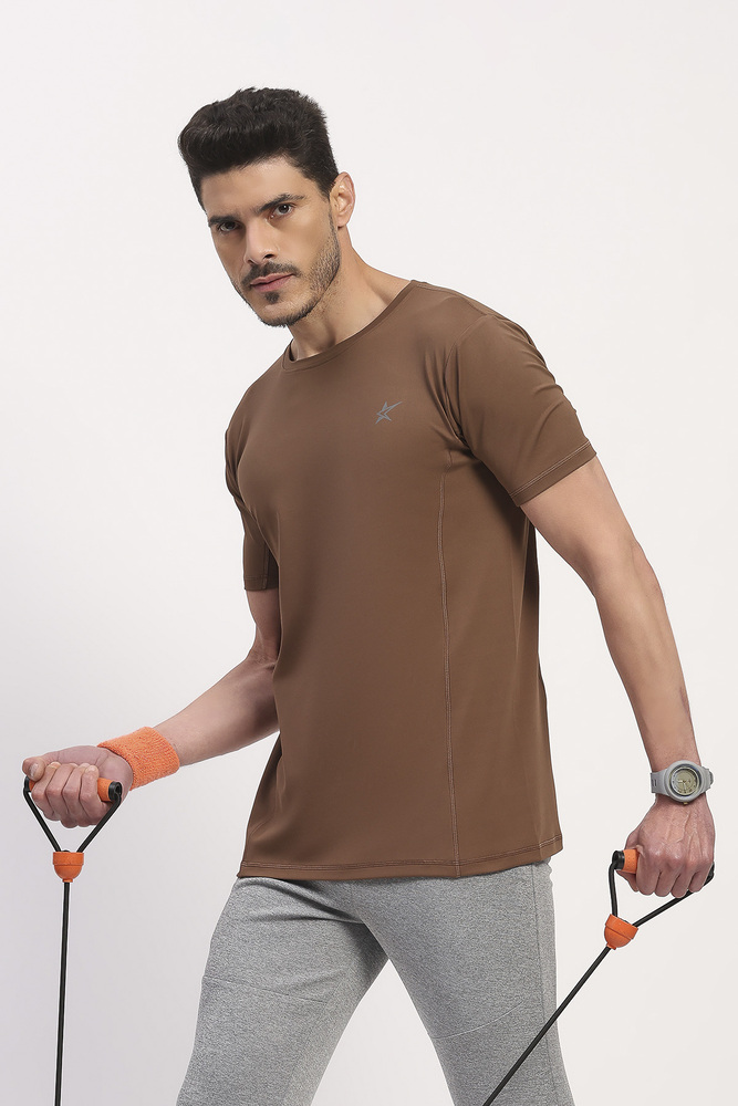 Kuefit Mens Brown Solid Sports T-Shirt with Everyday Active Style