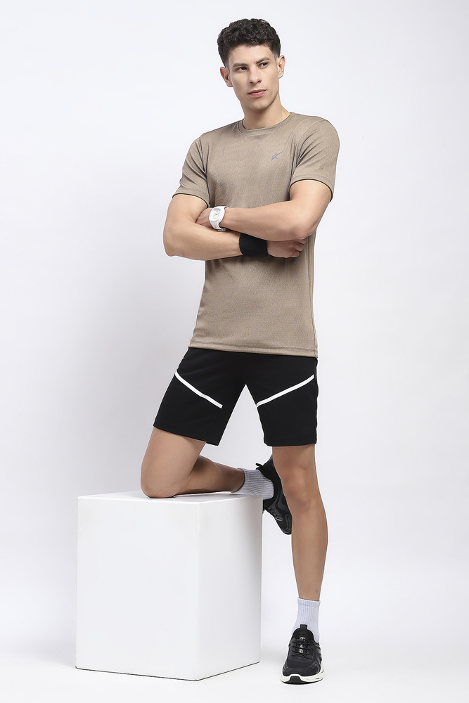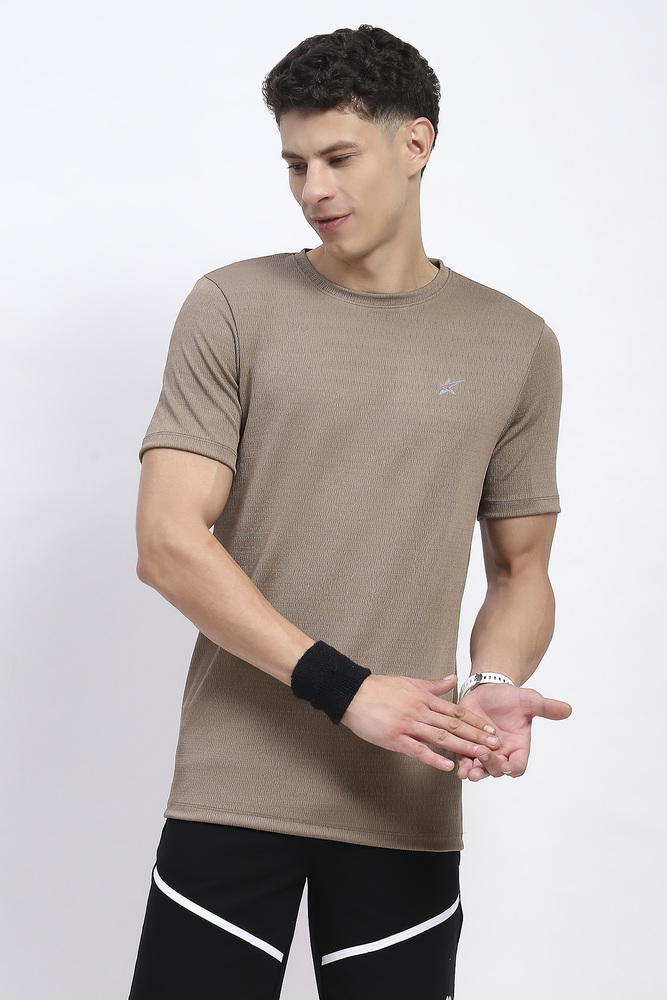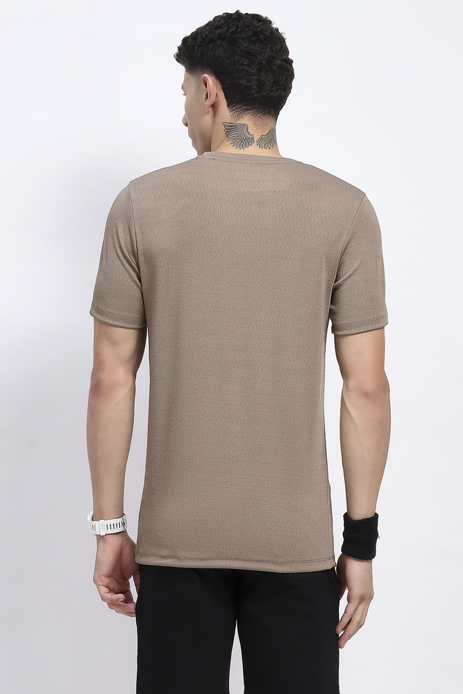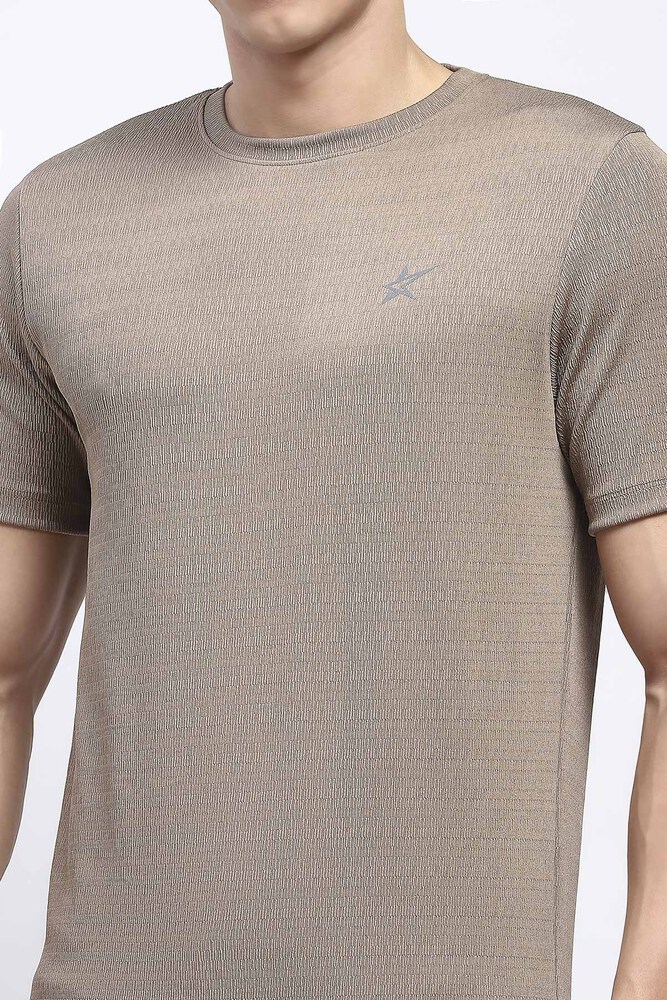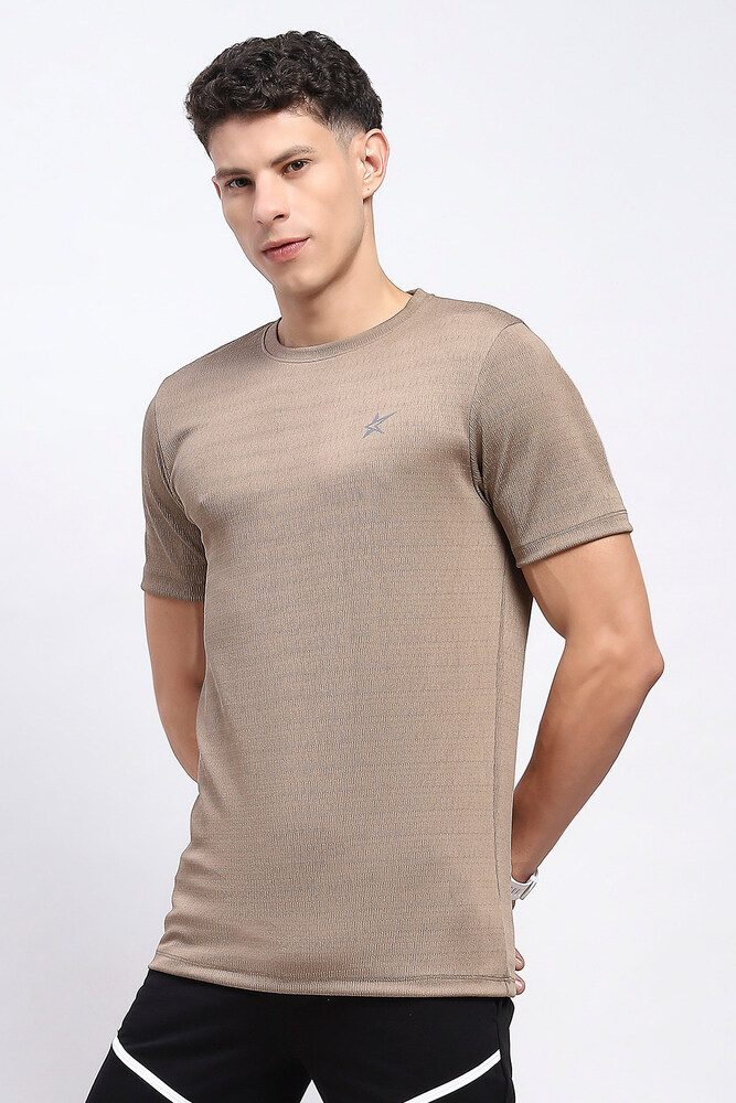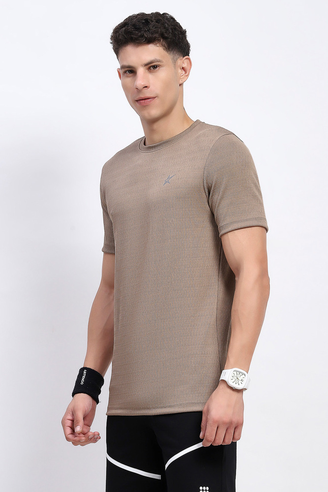 Kuefit Solid Active Crew Neck Tshirt for Men Biscuit Brown