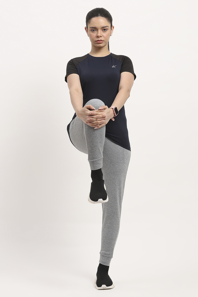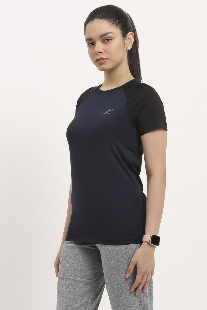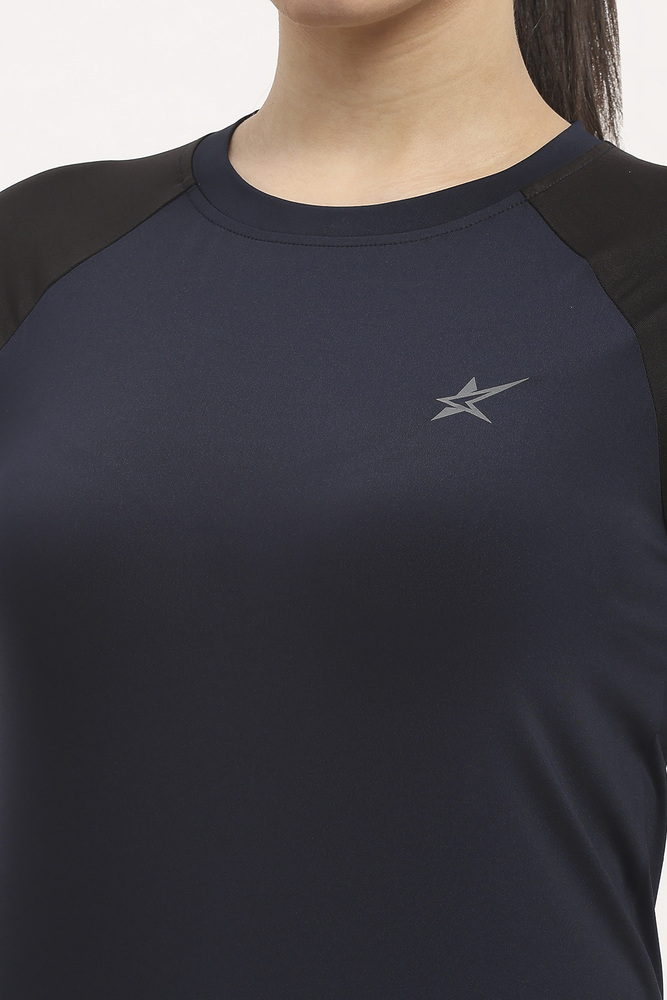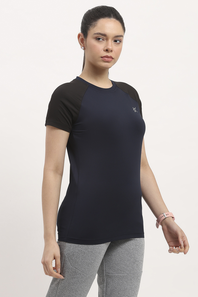 Kuefit Womens Navy Blue Sports Tee with Breathable Active Workout Comfort