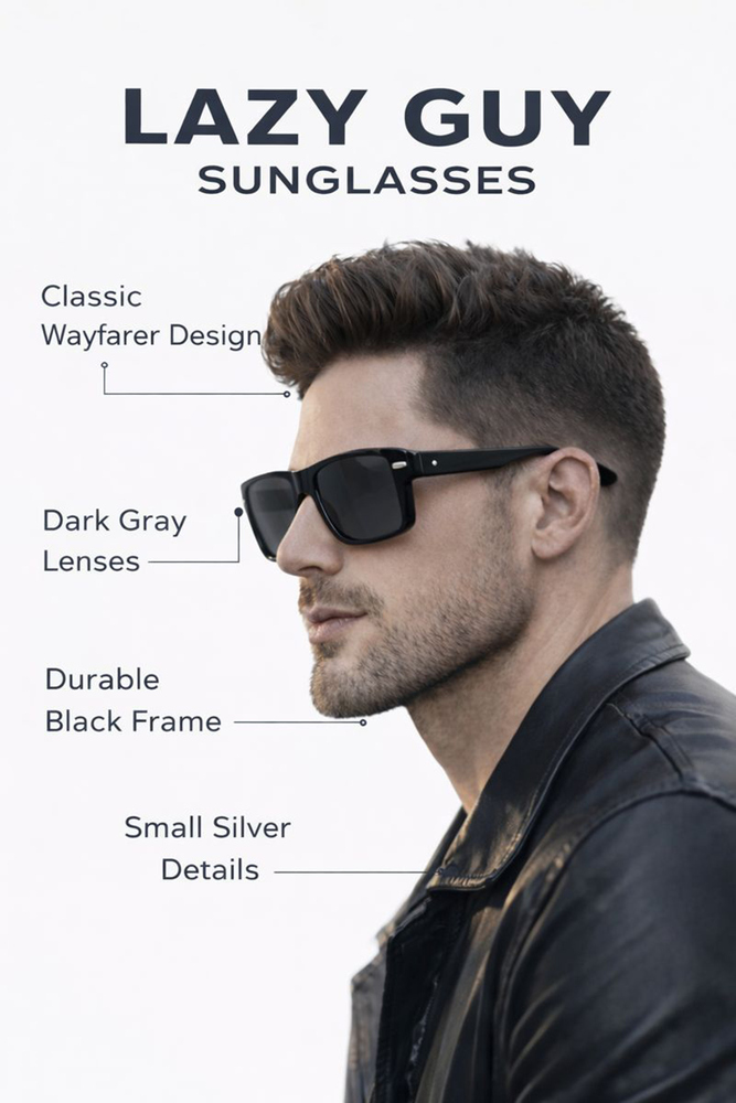 Lazy Guy sunglasses combine modern style with everyday comfort. designed with a lightweight yet durable frame, they offer a comfortable fit for all-day wear. The uv400 protective lenses help shield your eyes from harmful uva and uvb rays while reducing glare in bright sunlight. Perfect for driving, travel, outdoor activities, or casual use, these sunglasses add a confident, stylish touch to any outfit. Suitable for both men and women, lazy guy sunglasses are ideal for daily fashion and protection.