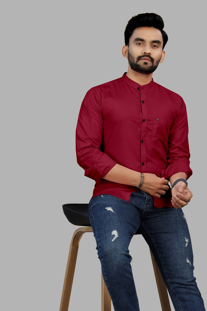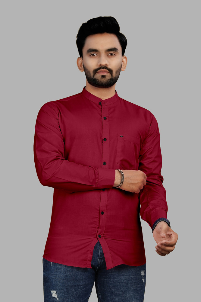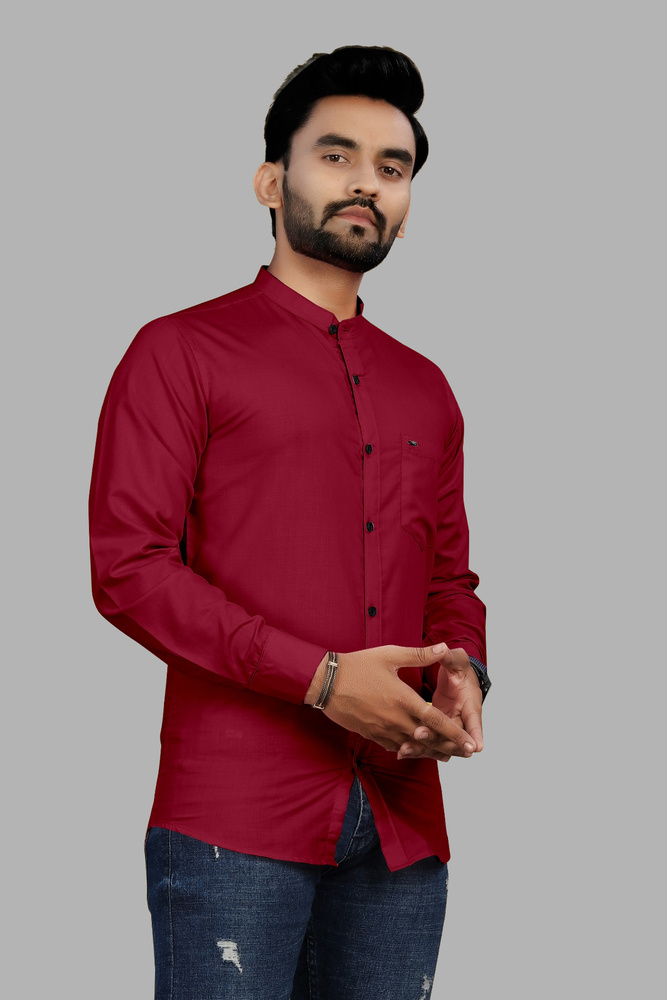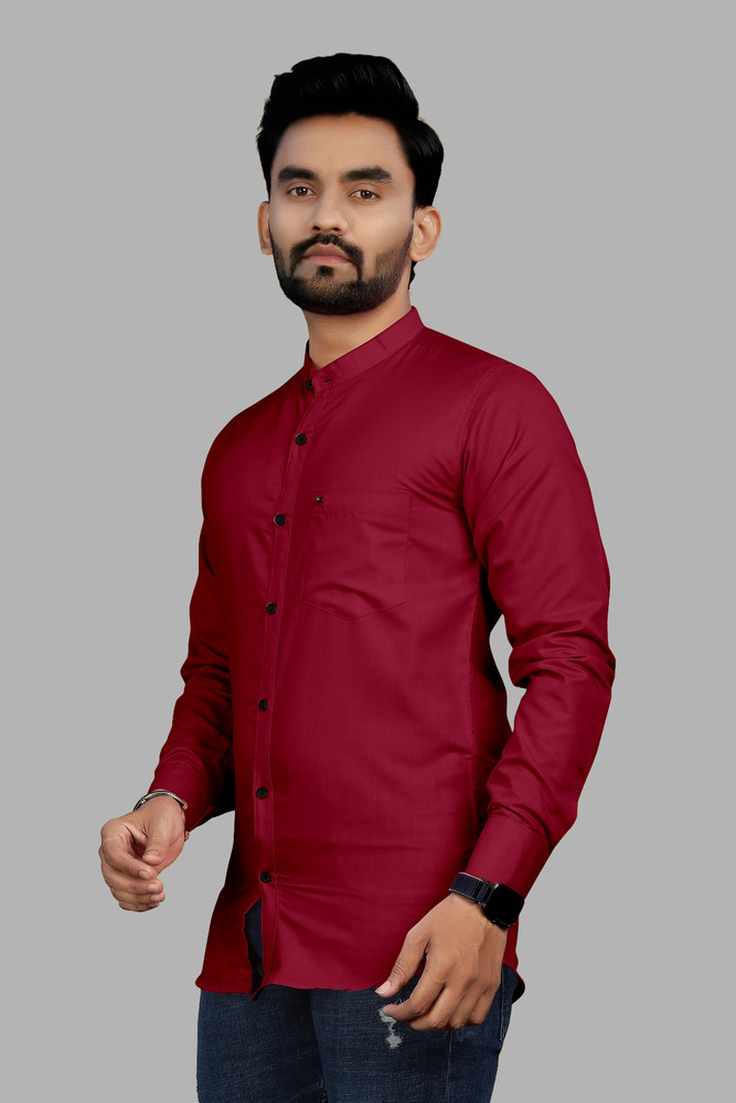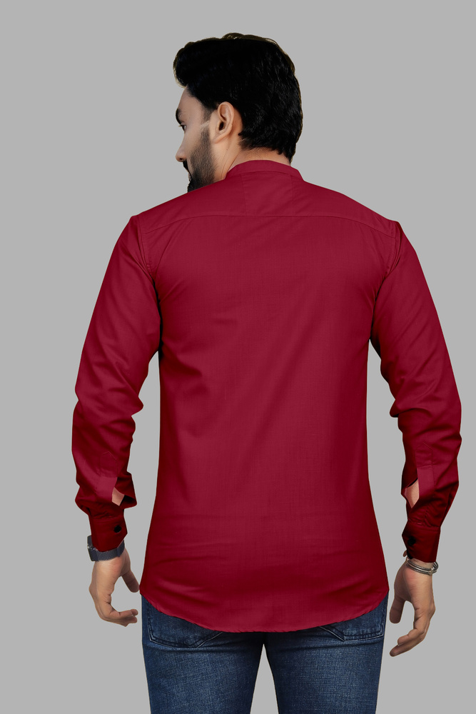 Maroon Chinese Collar Long Sleeve Casual Shirt For Men