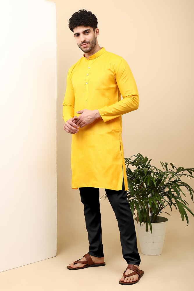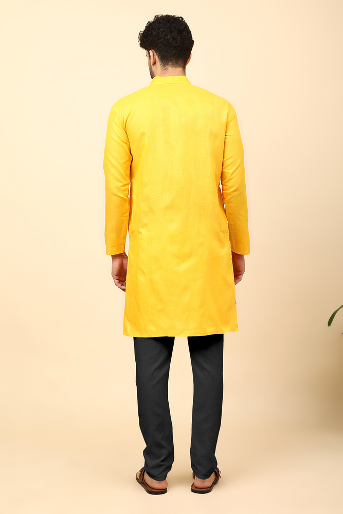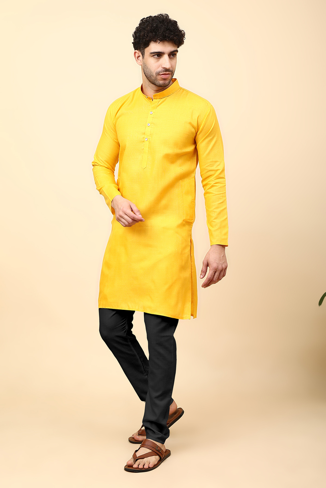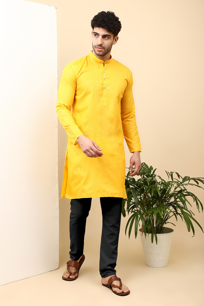 Mengo Mens Magic Cotton Plain Kurta And Black Pyjama