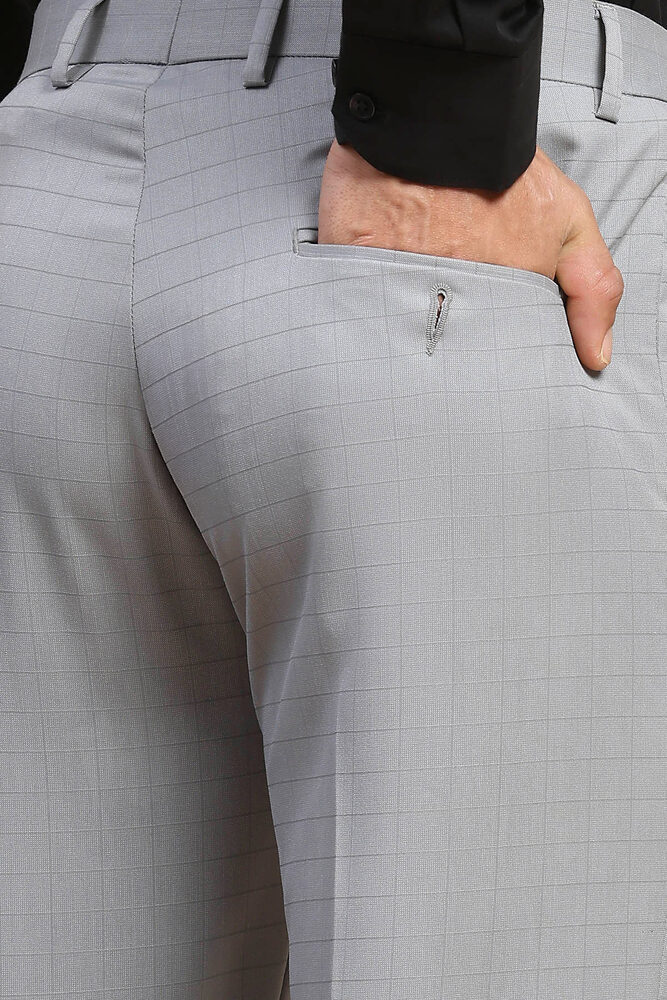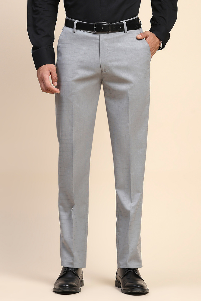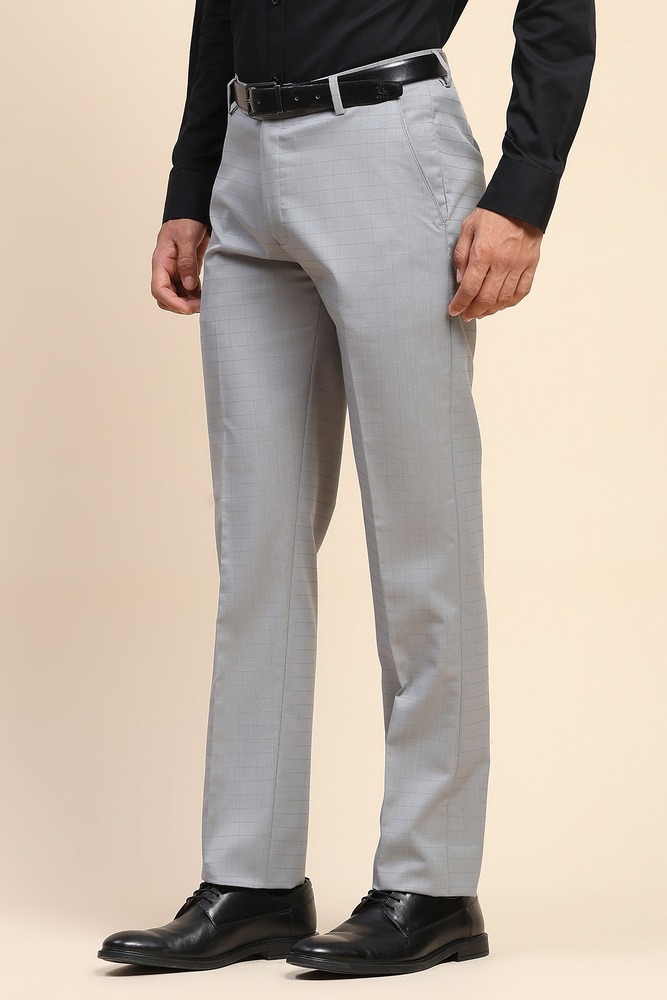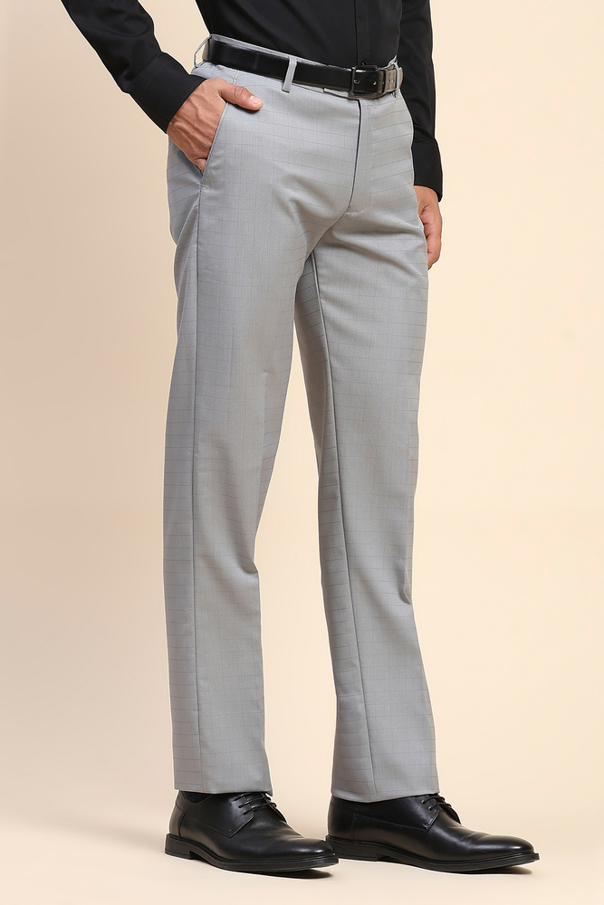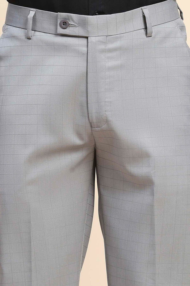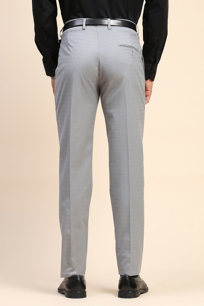 Mr. Huffman Men Cloud Grey Self Check Formal Wear Trouser